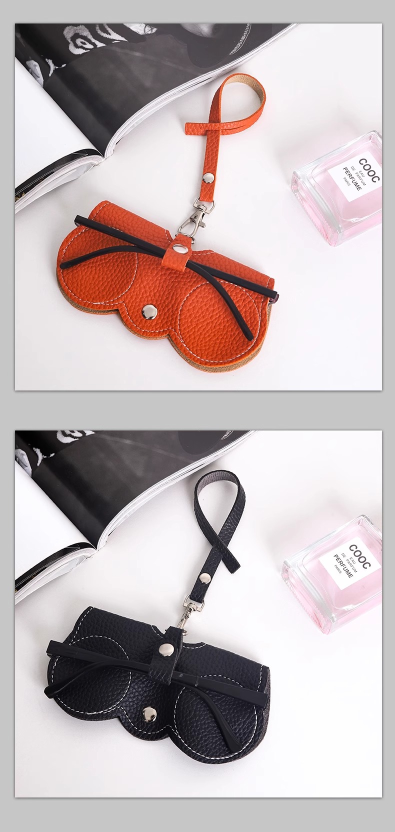 • 안경수납가방-오렌지 [두꺼운 부드러운 가죽, 낙하방지, 압력방지]