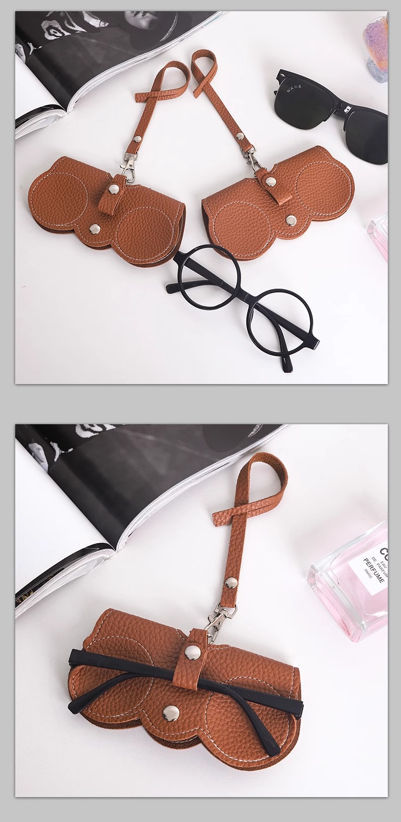 • 안경수납가방-브라운 [두꺼운 부드러운 가죽, 낙하방지, 압축방지]