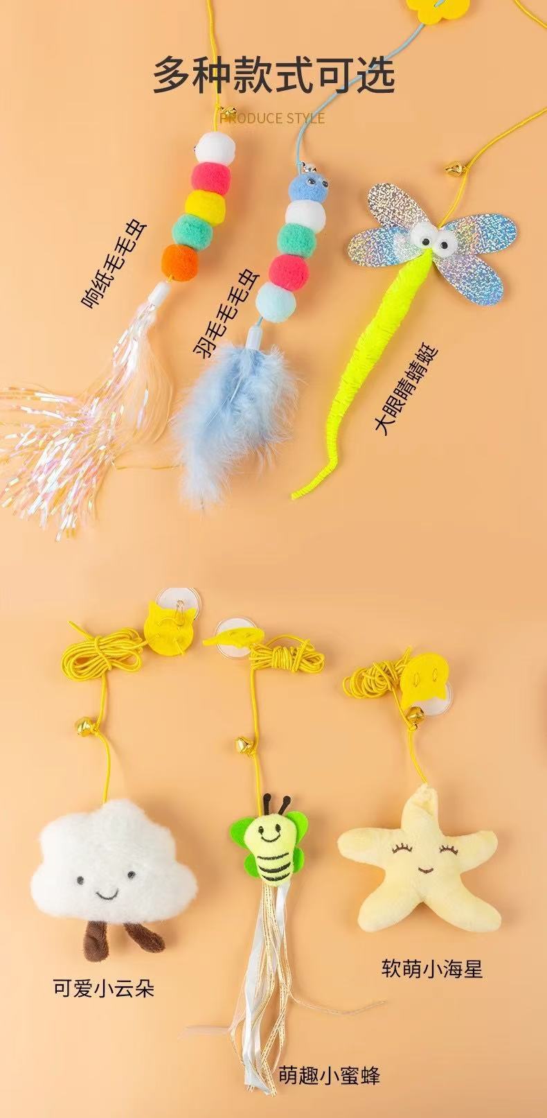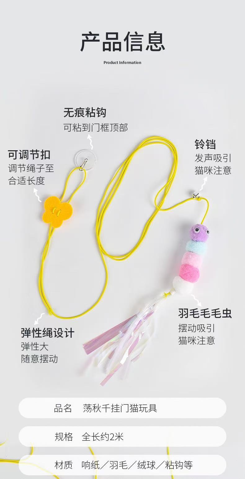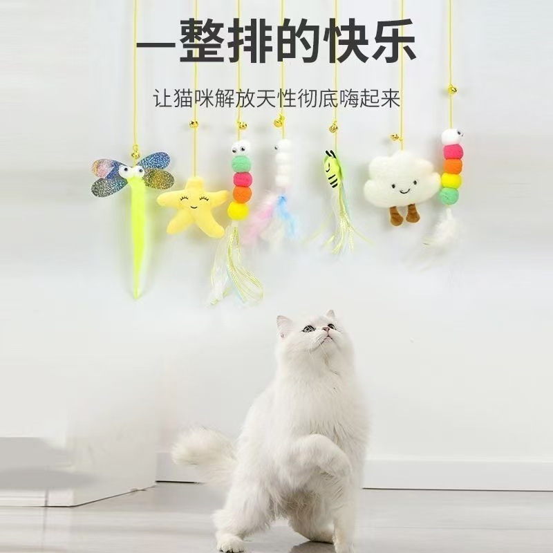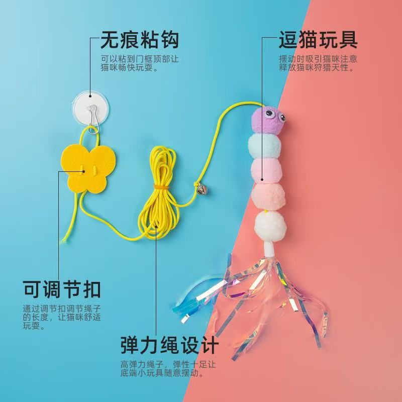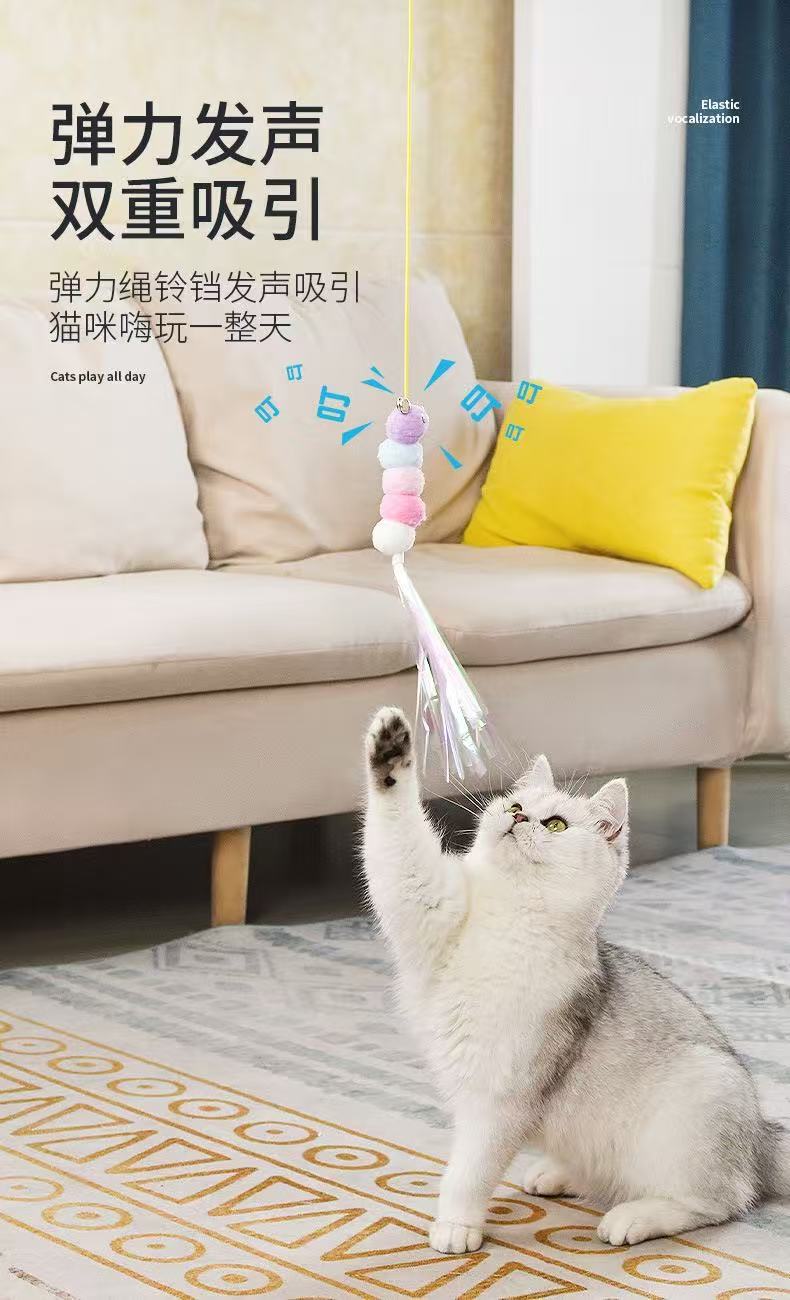 문에 걸린 고양이 장난감, 자기 자극 및 지루함 해소, 탄성 로프, 물림 방지 깃털 벨, 공장 도매 재고 있음스토어 가기