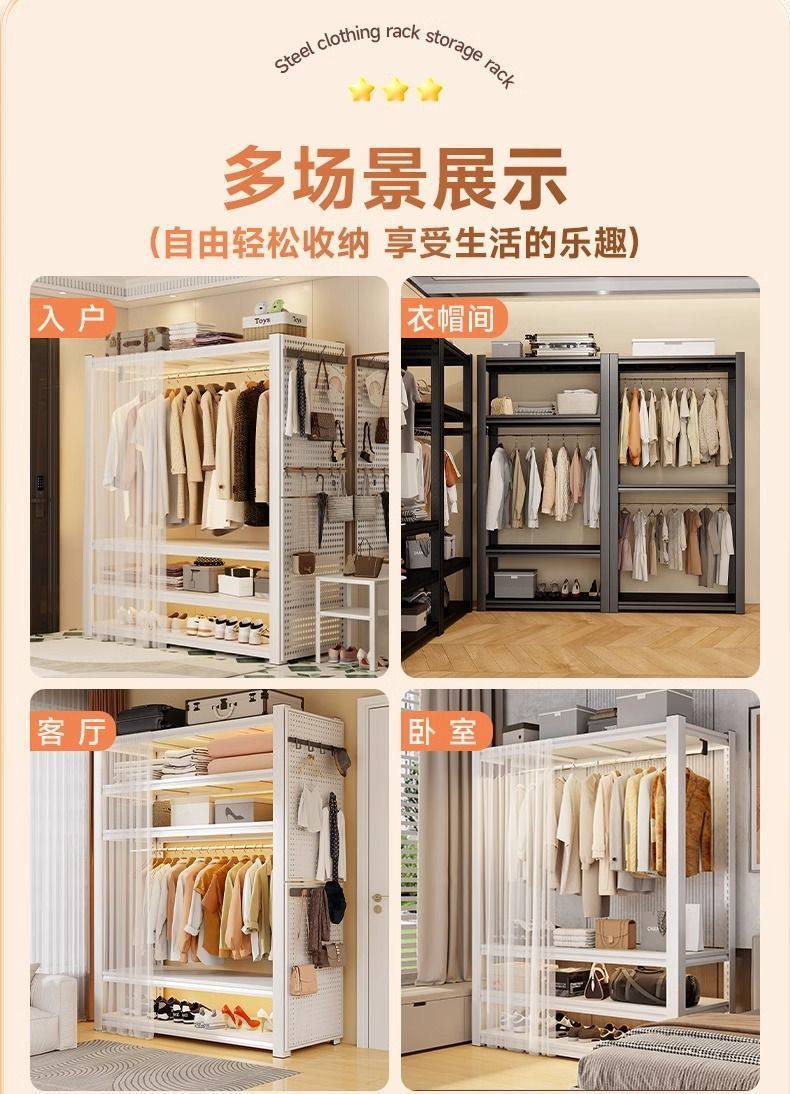 간단한 오픈 의류 랙 침실 주택 임대 바닥 코트 랙 다층 스토리지 랙 제조 업체 도매스토어 가기