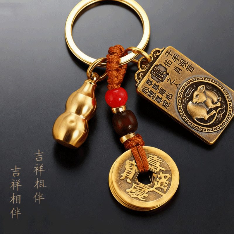 2025 폭발 12 조디악 수호 신이 핸들 조각 키 체인 펜던트 조롱박 5 황제 돈 작은 펜던트