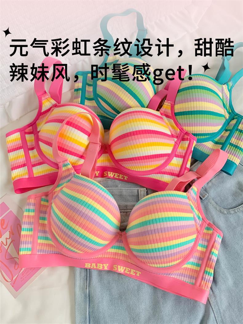 소녀들을위한 강철 반지가없는 오리지널 제조업체의 속옷 여름 작은 가슴 큰 집착 방지 처짐 레인보우 브라스토어 가기