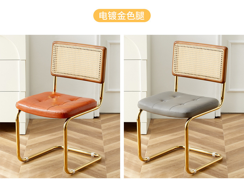 • 원목 - 호두색 등받이 - 브라운 샤이니 가죽 시트쿠션 - 골드 프레임