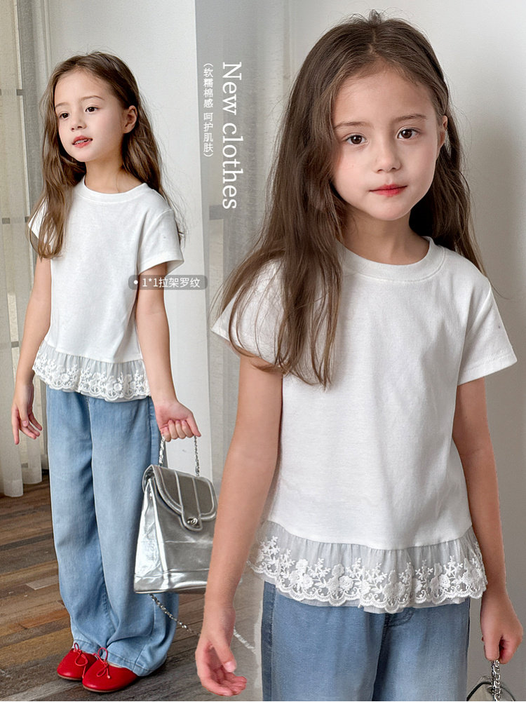 투투 코끼리 걸스 티셔츠 2025 봄 새 어린이 스위트 레이스 캐주얼 긴팔 키드베이스 셔츠