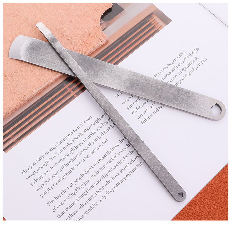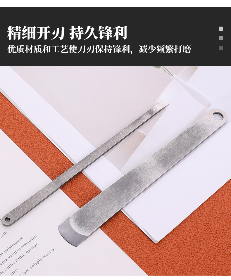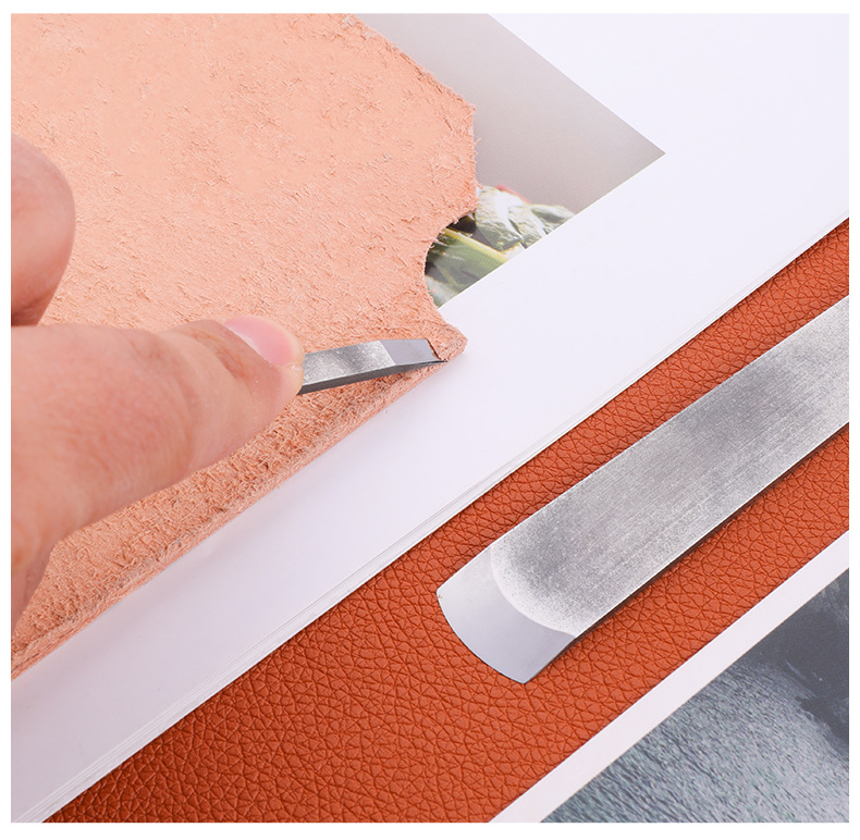 금속 단조 가죽 절단 칼 삽 가죽 둥근 가장자리 얇은 칼 삽 얇은 섹션 절단 비스듬한 가죽 가죽 DIY 수제