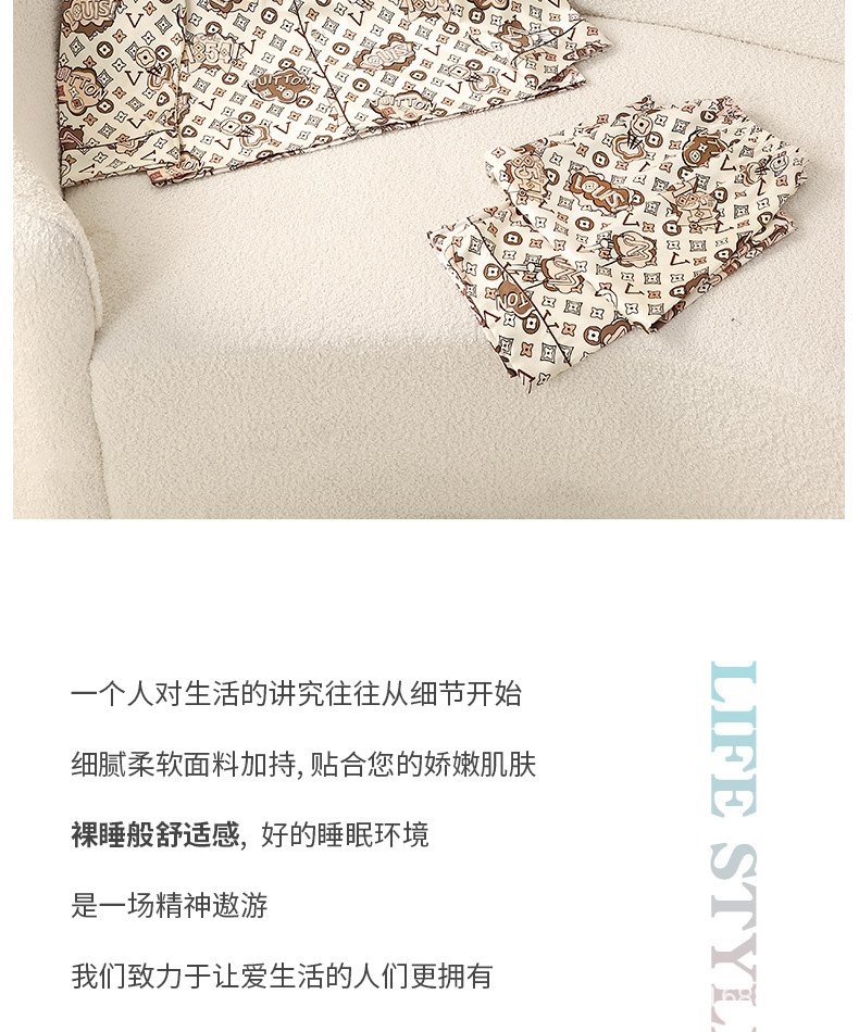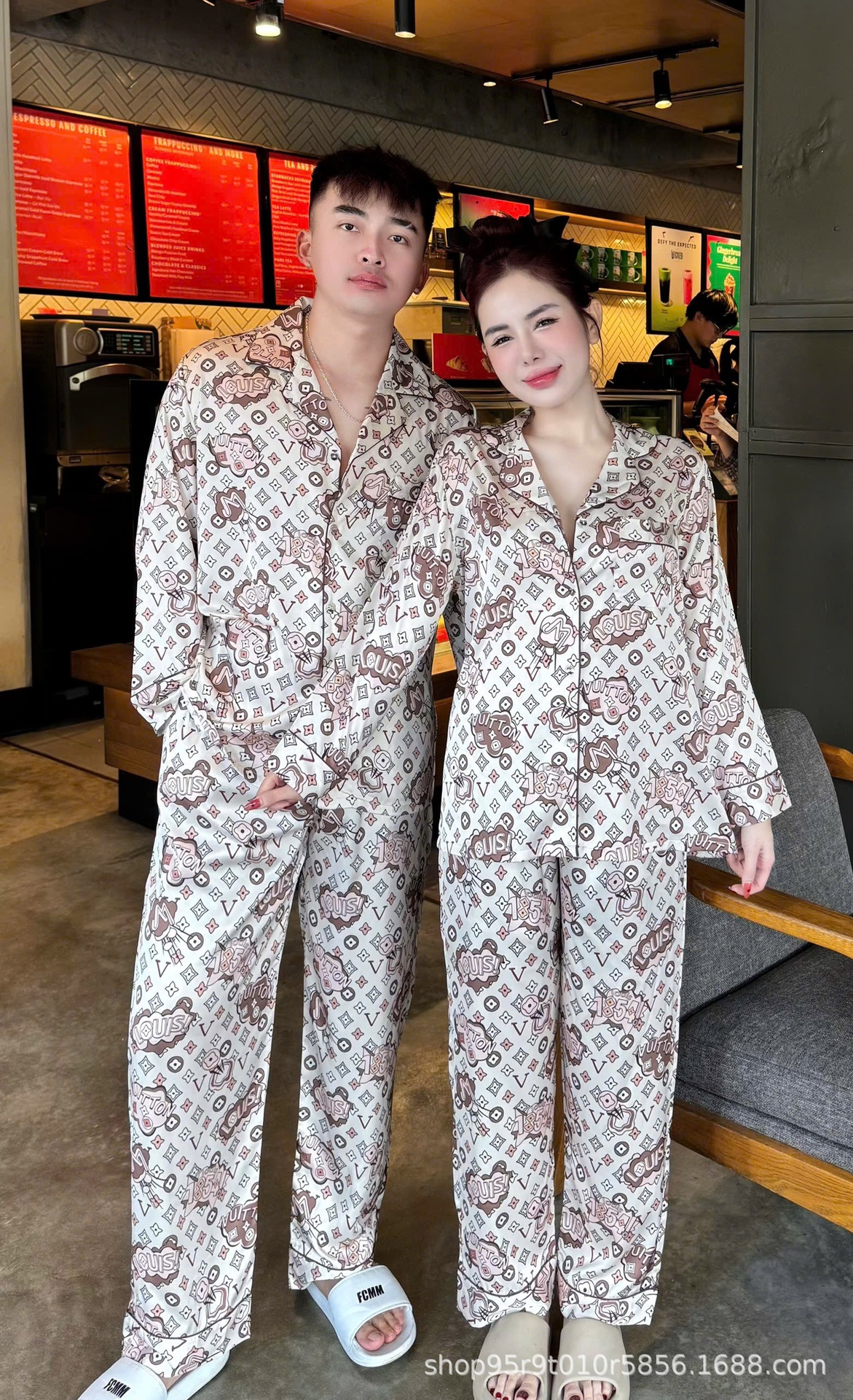 봄과 가을 새로운 1854 인쇄 긴 소매 바지 커플 아이스 실크 파자마 느슨한 캐주얼 홈 의류 도매스토어 가기