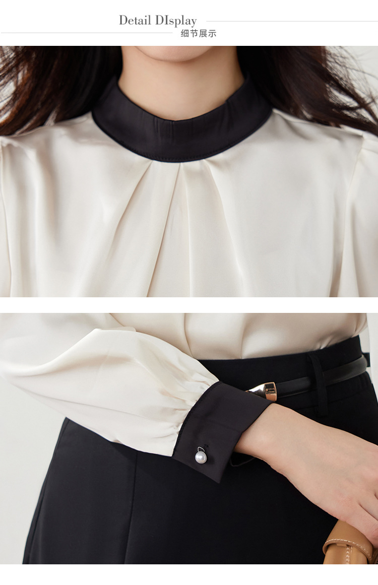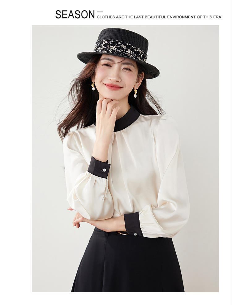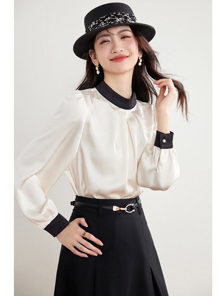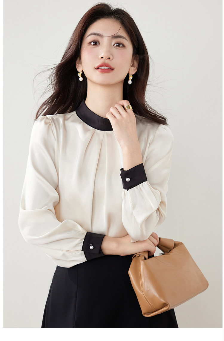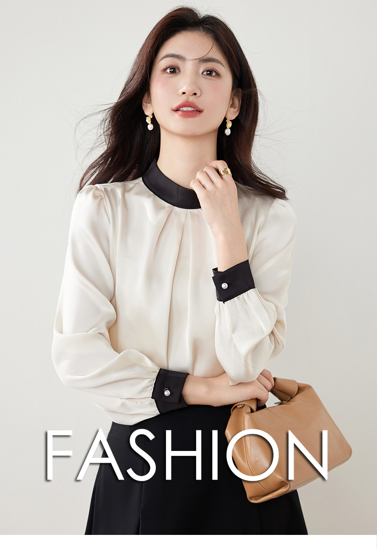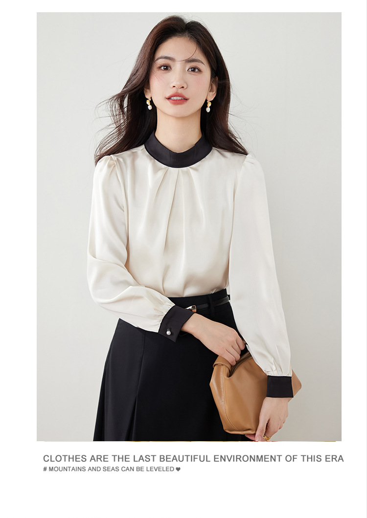 진짜 샷 프랑스 사교계 기질 스탠드 칼라 쉬폰 셔츠 여성의 2025 봄 새로운 컬러 매칭 복고풍 세련된 탑