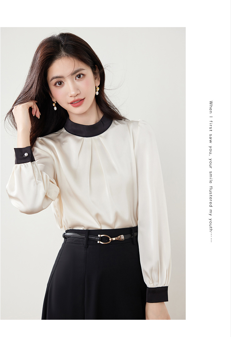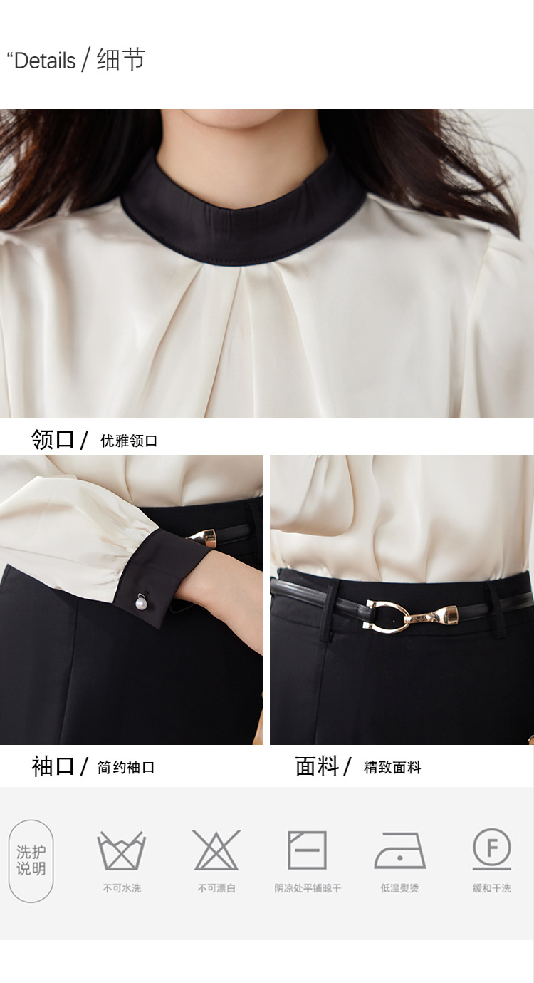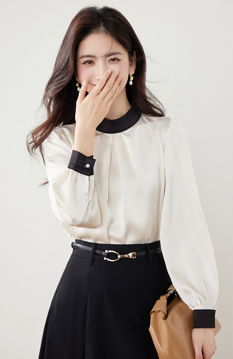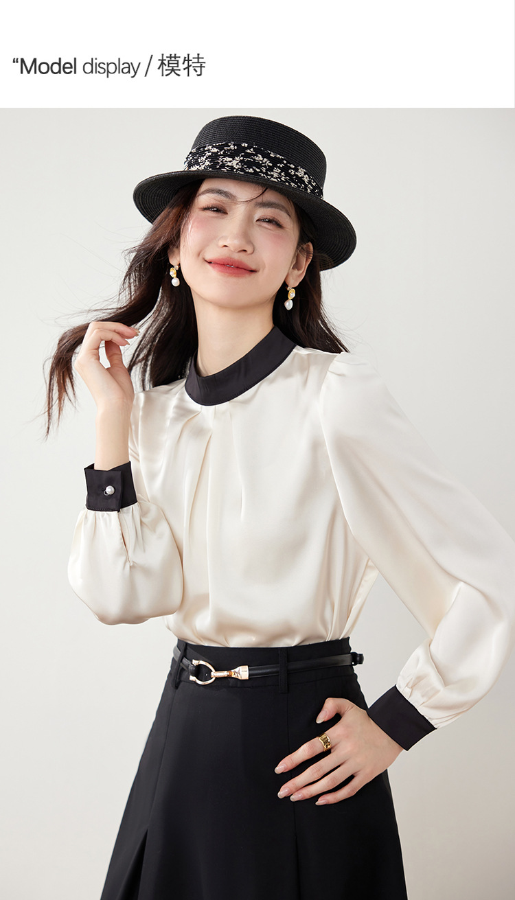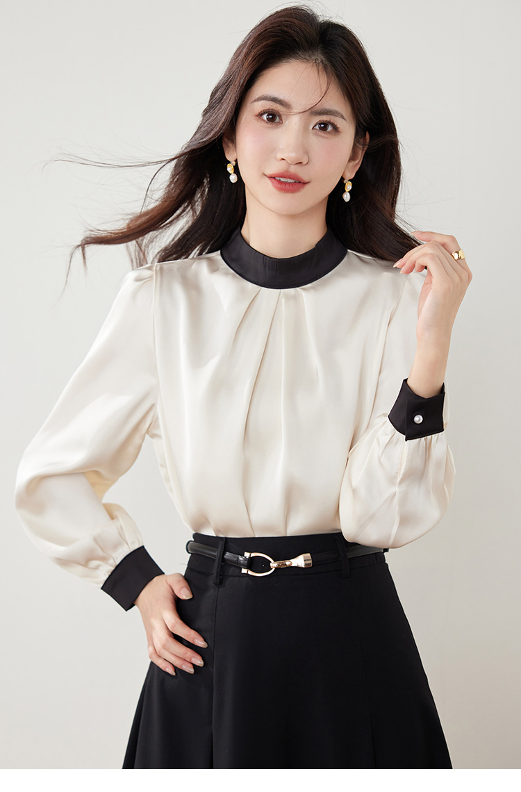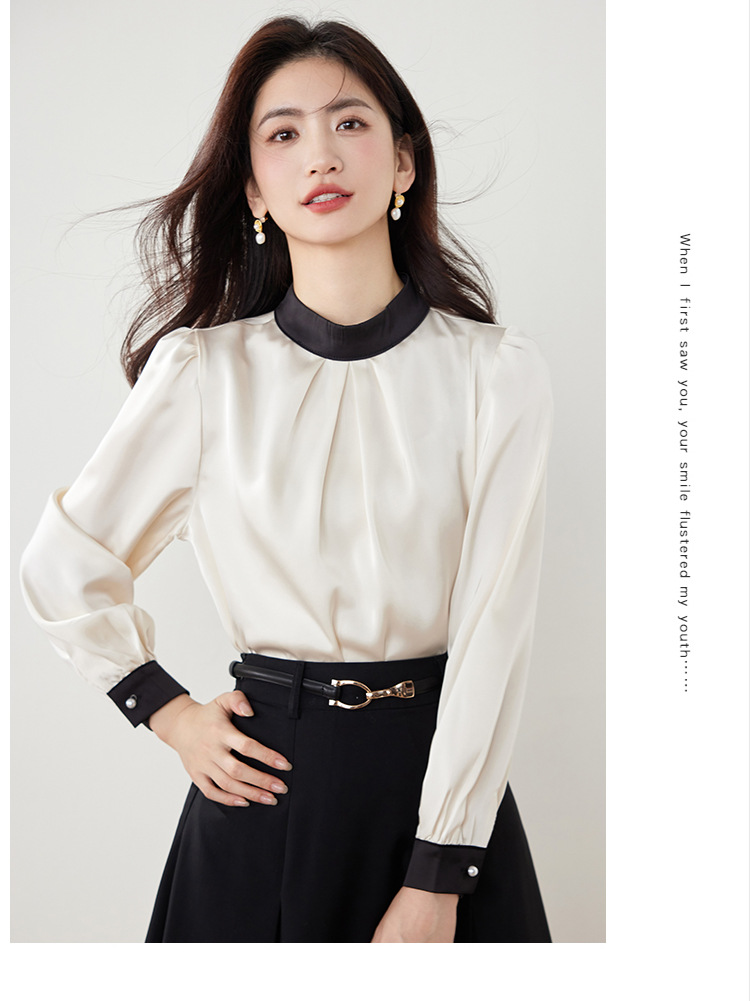 진짜 샷 프랑스 사교계 기질 스탠드 칼라 쉬폰 셔츠 여성의 2025 봄 새로운 컬러 매칭 복고풍 세련된 탑
