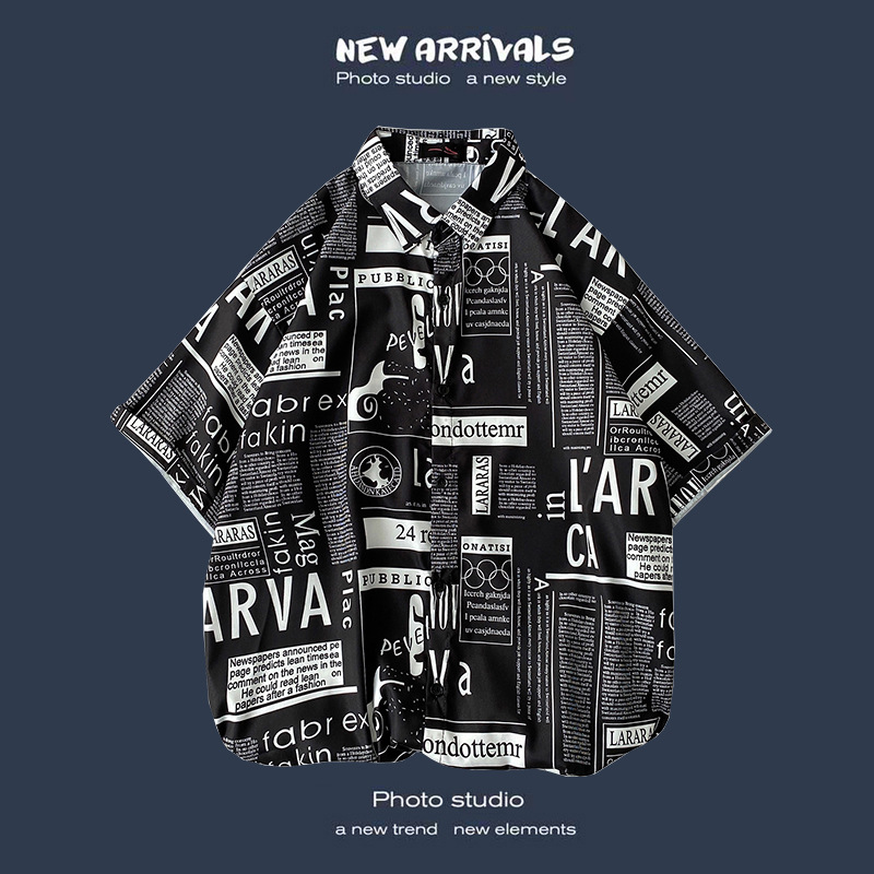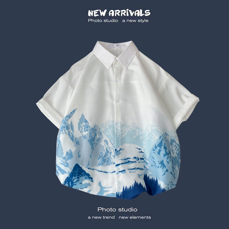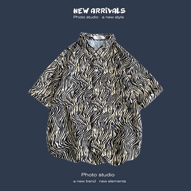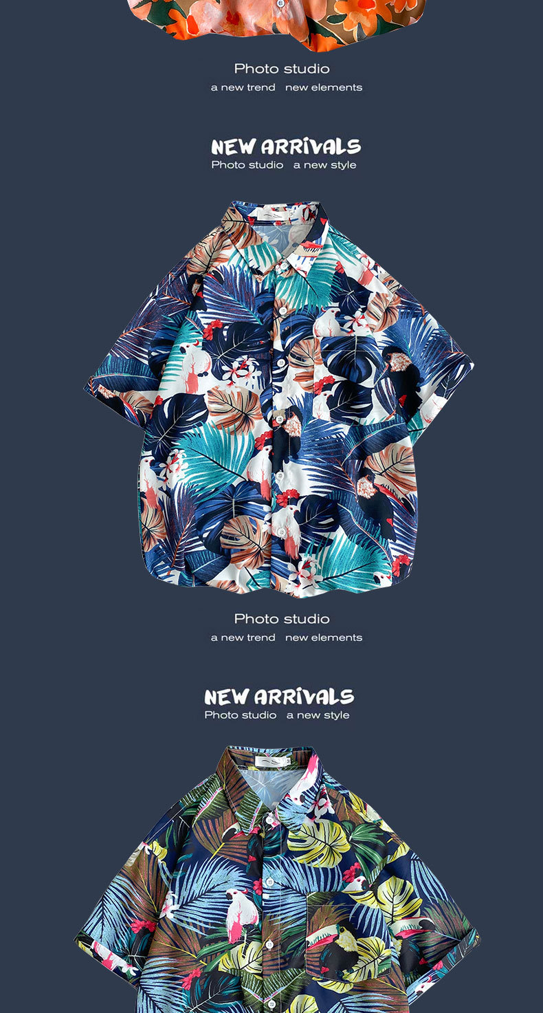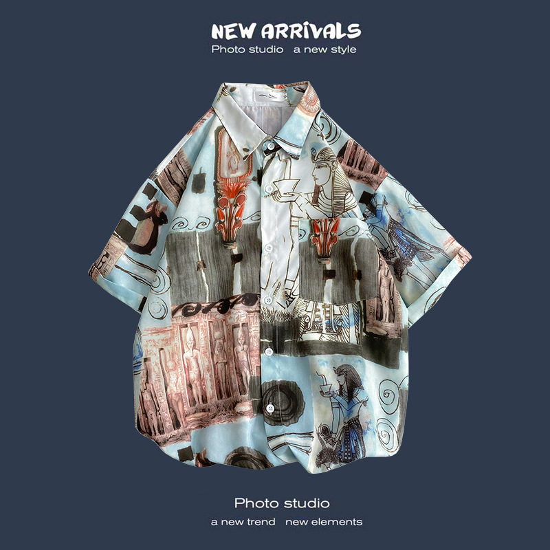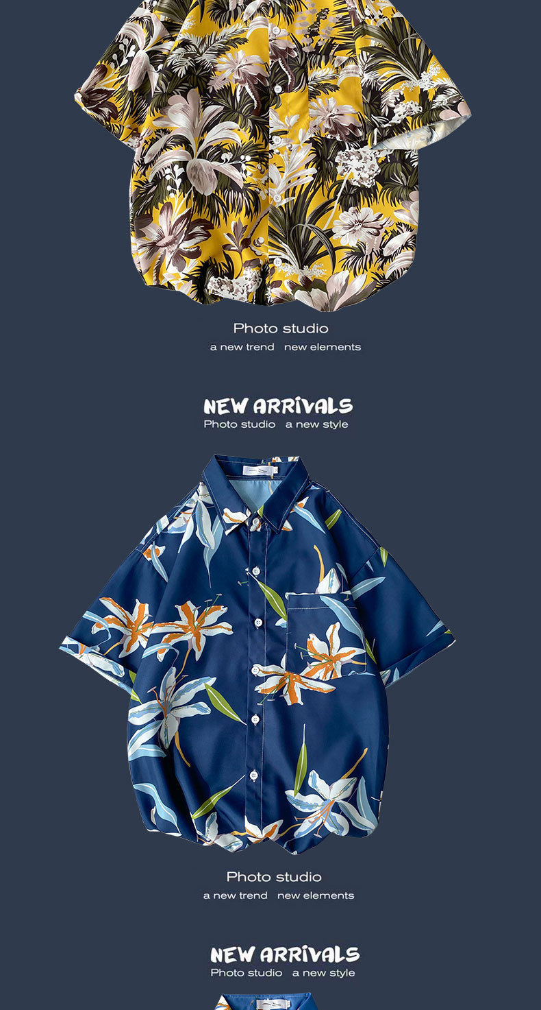 여름 새로운 한국 스타일 Ins 홍콩 스타일 레트로 꽃 얇은 커플 셔츠 탑 느슨한 반팔 셔츠 남성 트렌디스토어 가기