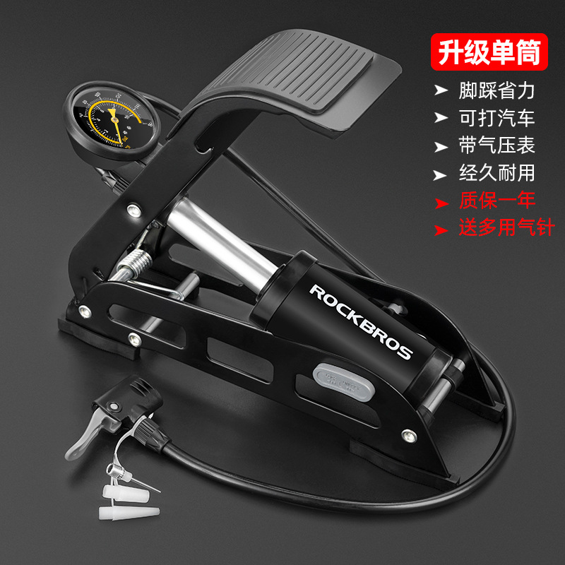 • 공기압 게이지가 있는 업그레이드된 단일 배럴 페달, 검정색, 다목적 볼 니들 포함