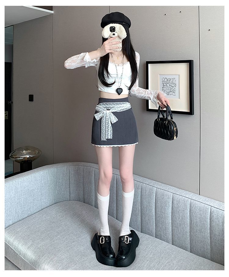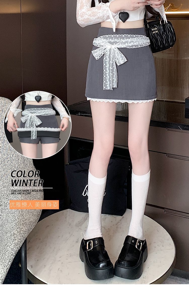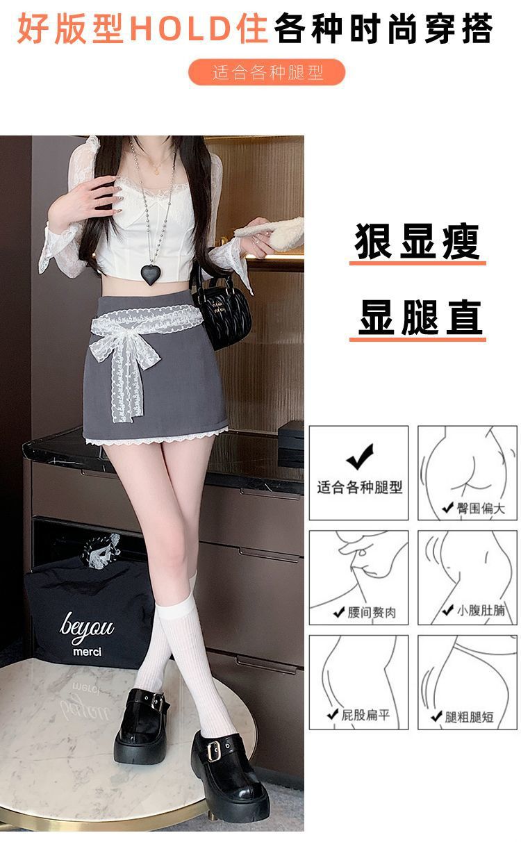 레이스 업 레이스 스트랩 눈부심 높은 허리 스커트 소녀의 새로운 스타일 레이스 스커트 짧은 스커트 뜨거운 소녀 스커트스토어 가기