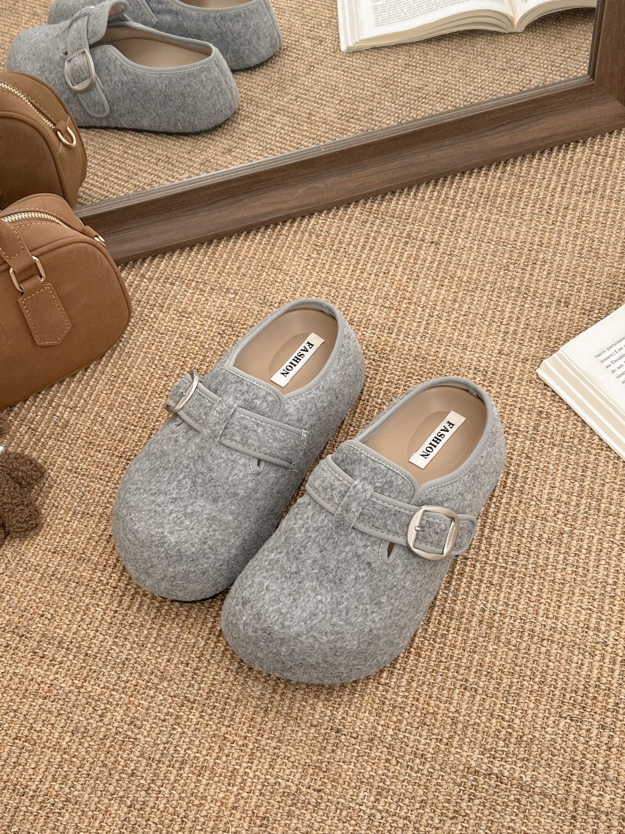 모든 경기 Baotou Drag Outer Wear Spring New Birkenstocks 신발 모직 여성 레트로 패션 2025 두꺼운 슬립 온