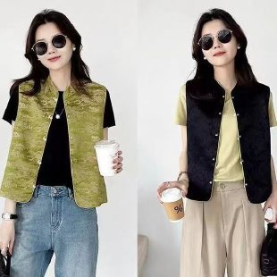 새로운 중국식 양면 자카드 조끼 탑 여자 복고풍 스타일 수직 칼라 싱글 브레스트 아우터 올 매치 조끼 봄 및 가을 뉴스토어 가기