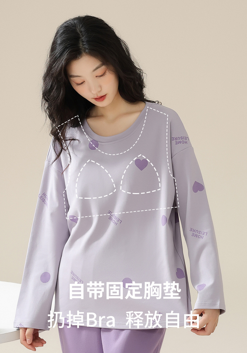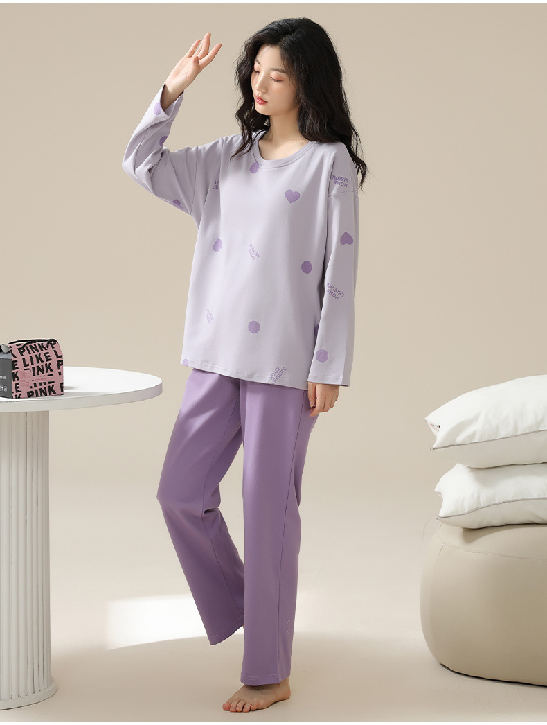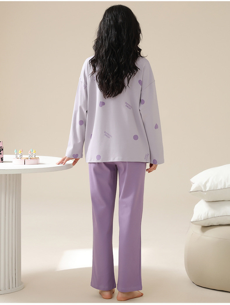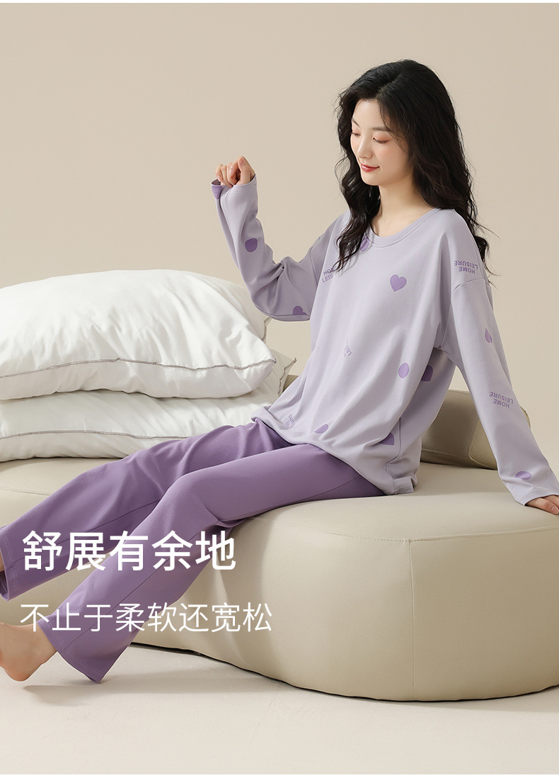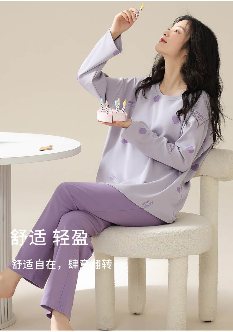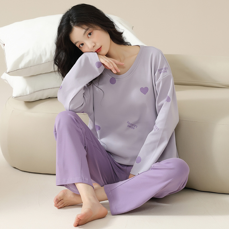 여성면 잠옷 봄과 가을 새로운 긴 소매 귀여운 풀오버 코튼 홈 옷 세트 가을 입을 수 있습니다스토어 가기