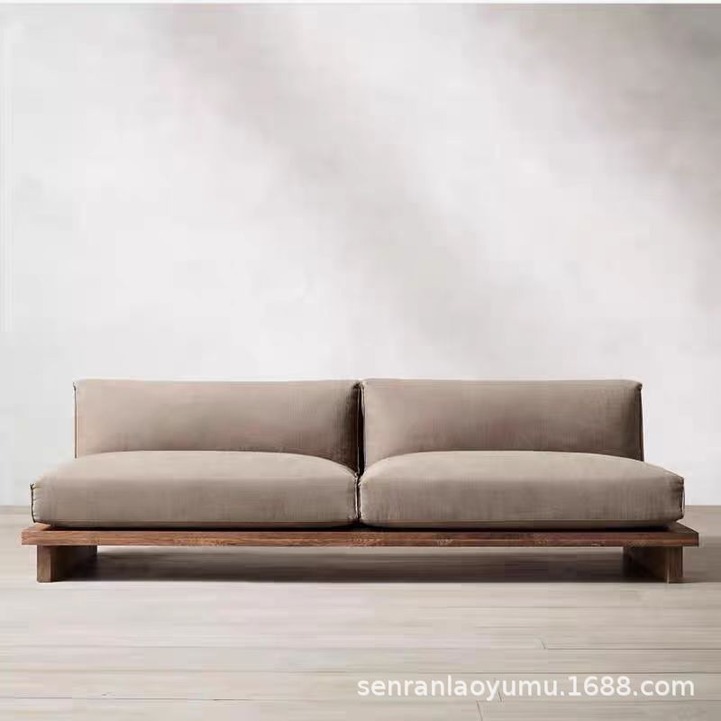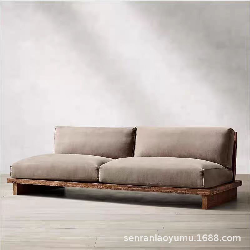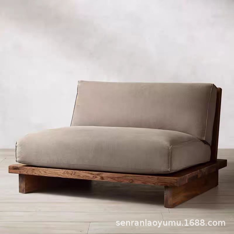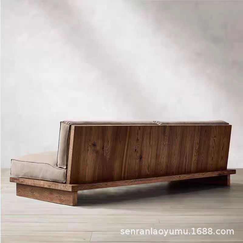 조용한 스타일 빈티지 느릅 나무 소파 솔리드 우드 더블 소파 간단한 가정용 작은 아파트 싱글 소파 스트레이트 로우 소파스토어 가기