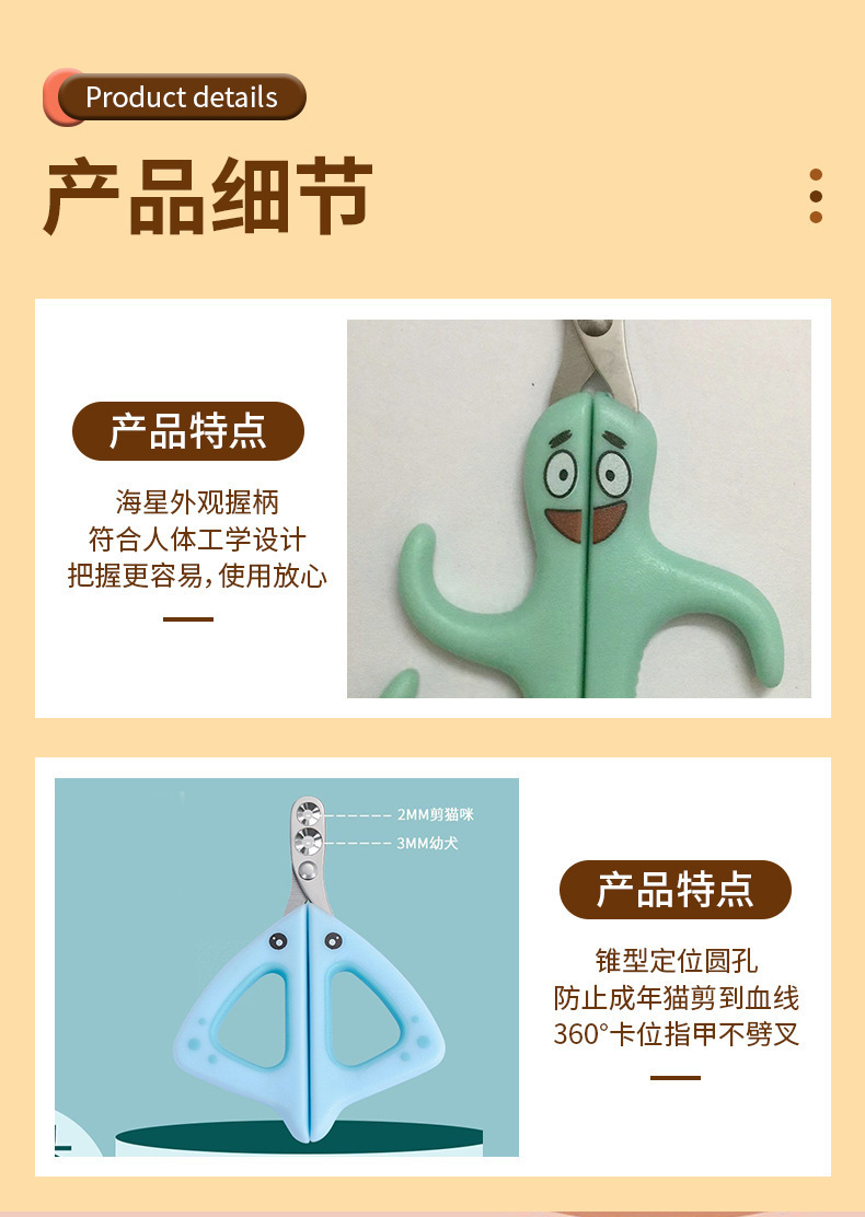 스테인레스 스틸 고양이 네일 클리퍼 불가사리 안티 혈액 라인 라운드 홀 네일 클리퍼 고정 라운드 입 작은 블라인드 고양이 가위