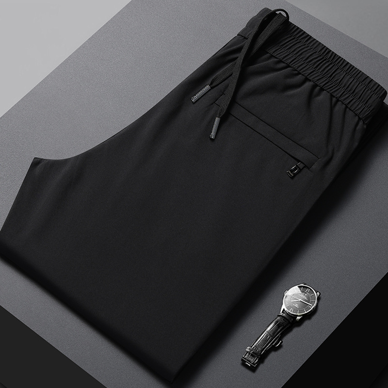 2026 봄 여름 신상 남성용 스트레이트 캐주얼 팬츠, 중년 아빠를 위한 신축성 있는 허리밴드, 얇은 아이스 실크 느낌의 바지스토어 가기