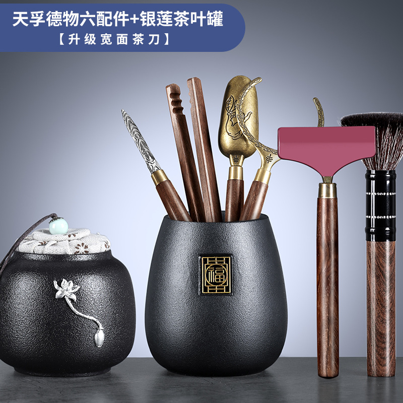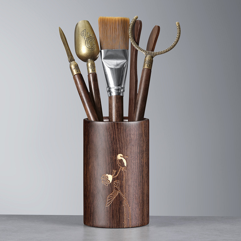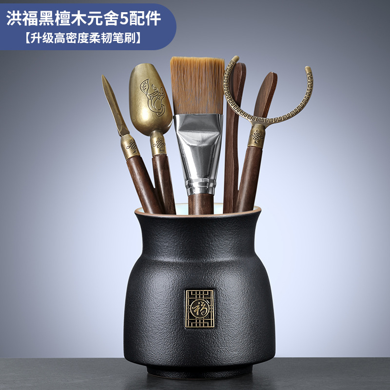 • 31 [맞춤형 흑단 모델] 흑단 둥근 연꽃 향기 다도병 + 흑단 위안서 5개 액세서리