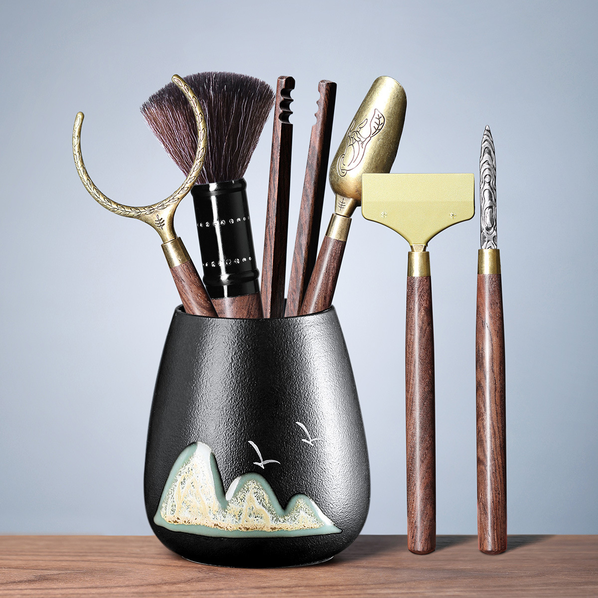 • 30 검은 도자기-Zhiyuan 다도 병 + Wenze 6개 액세서리