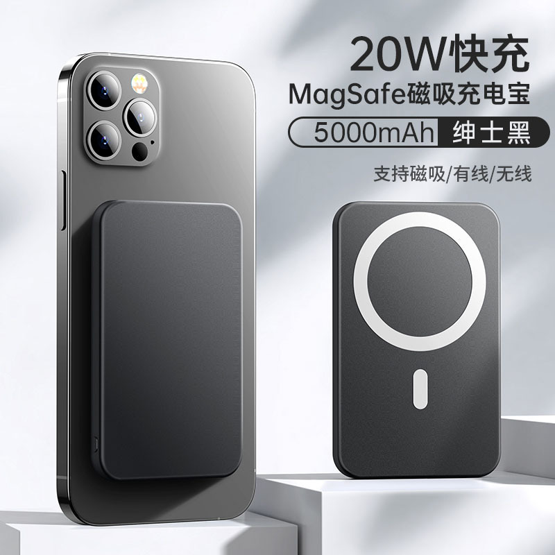 新款私模车载磁吸无线充5000MAH充电宝