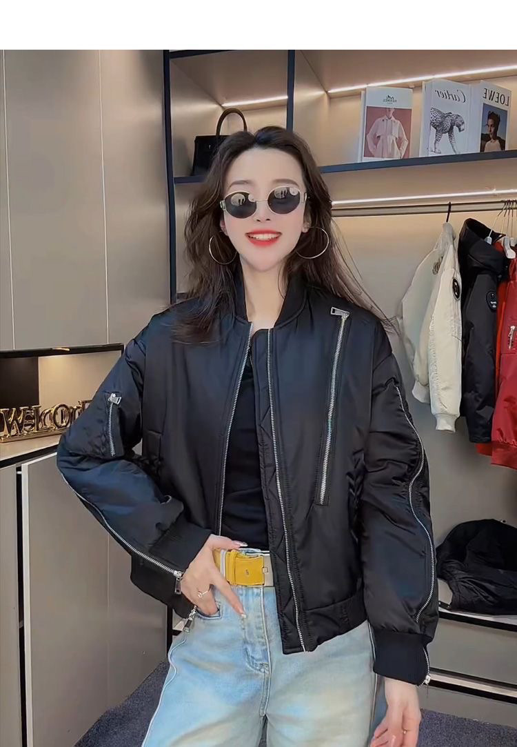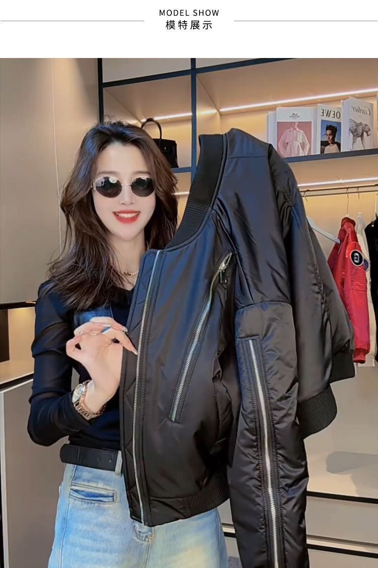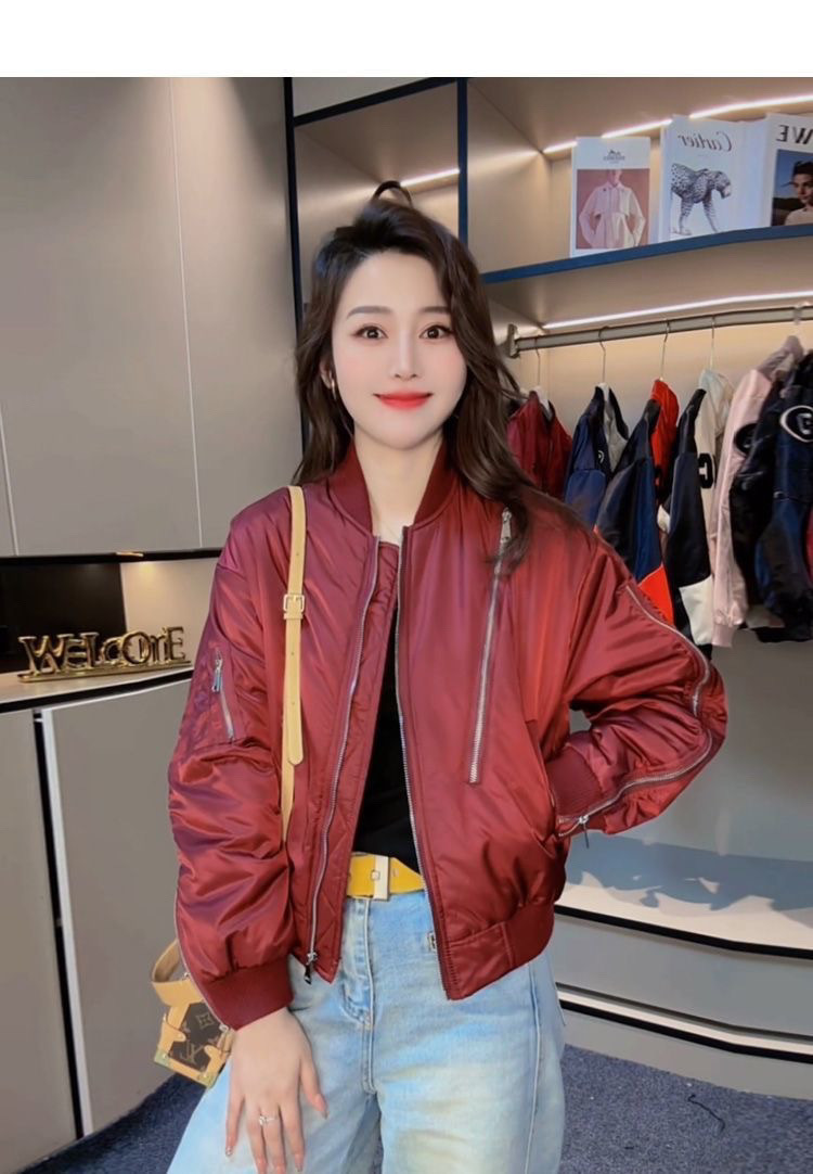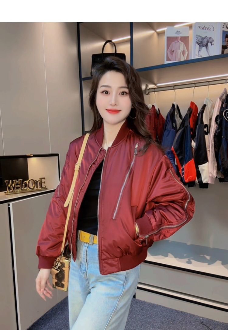 짧은 2025 봄과 가을 새로운 퀼트 야구 코트 여자 폭발성 2 면 여자 비행가 재킷스토어 가기