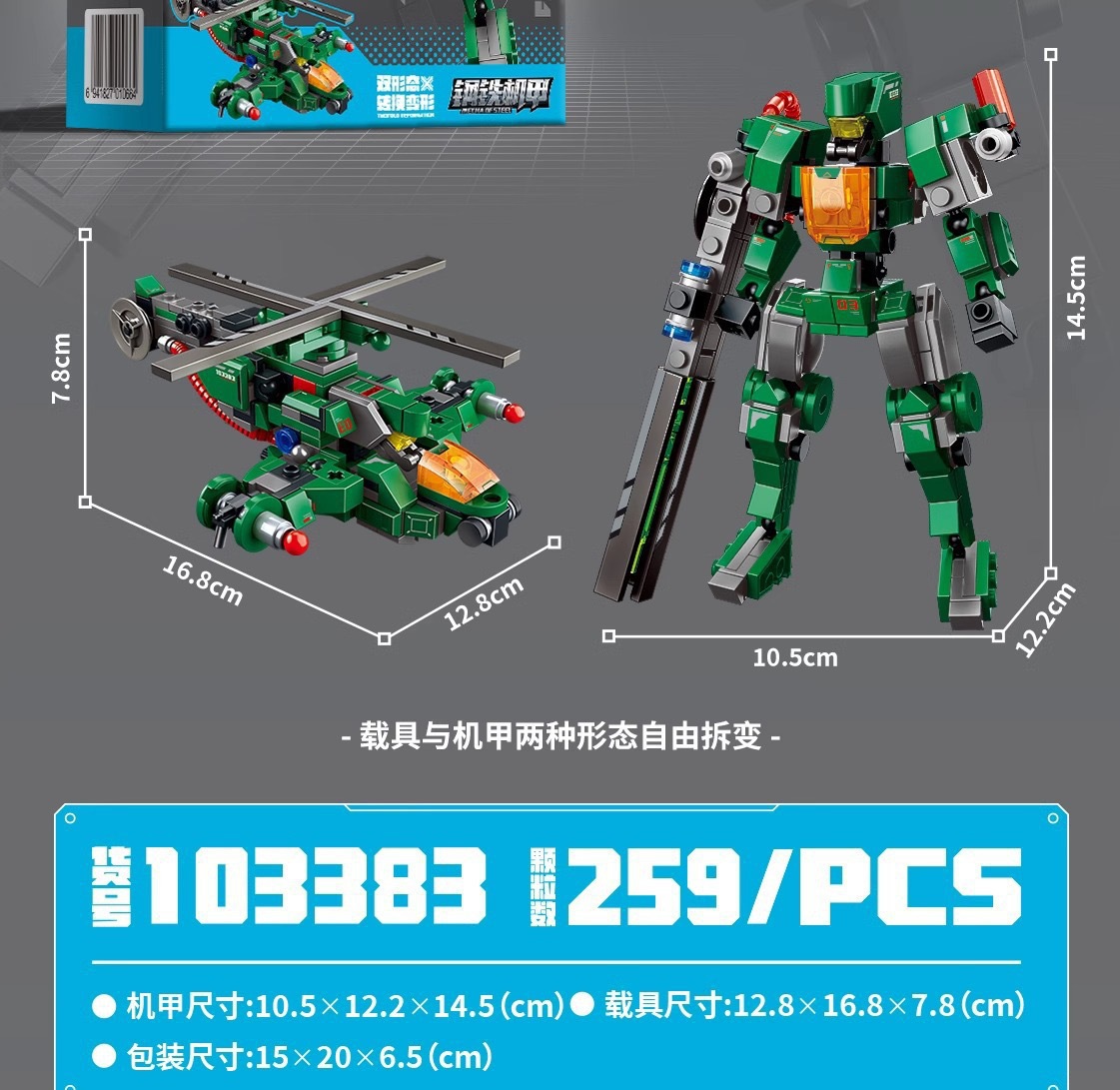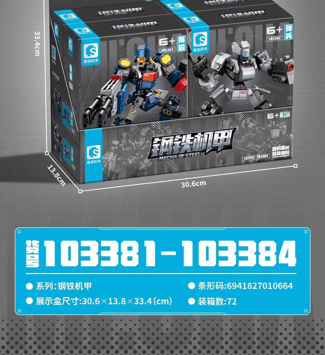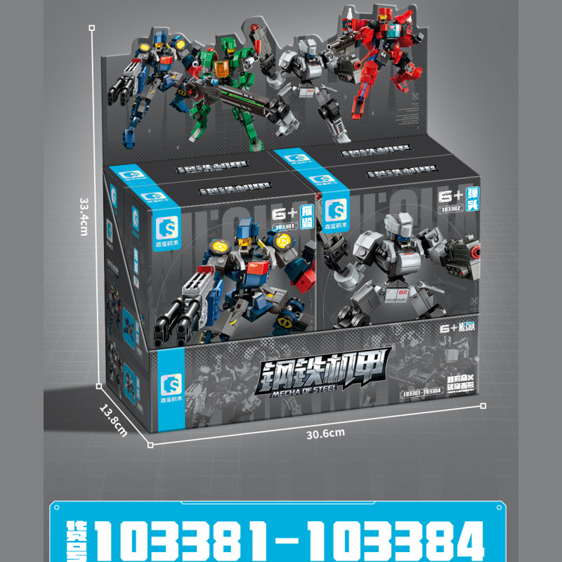 센 바오 103381 스틸 메카 전사 변형 로봇 빌딩 블록 조립 퍼즐 수제 DIY 소년 장난감스토어 가기