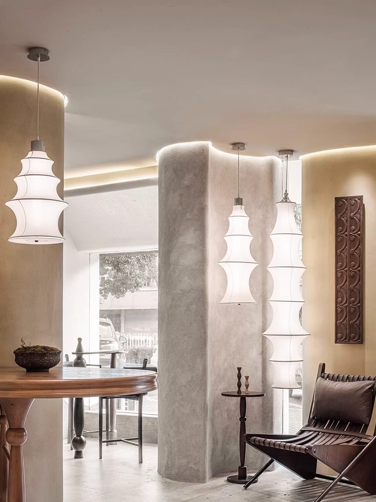 2024 북유럽 스타일 누에 실크 대나무 샹들리에 모델 룸 타타미 창조적 인 긴 독특한 대나무 램프 긴 랜턴스토어 가기