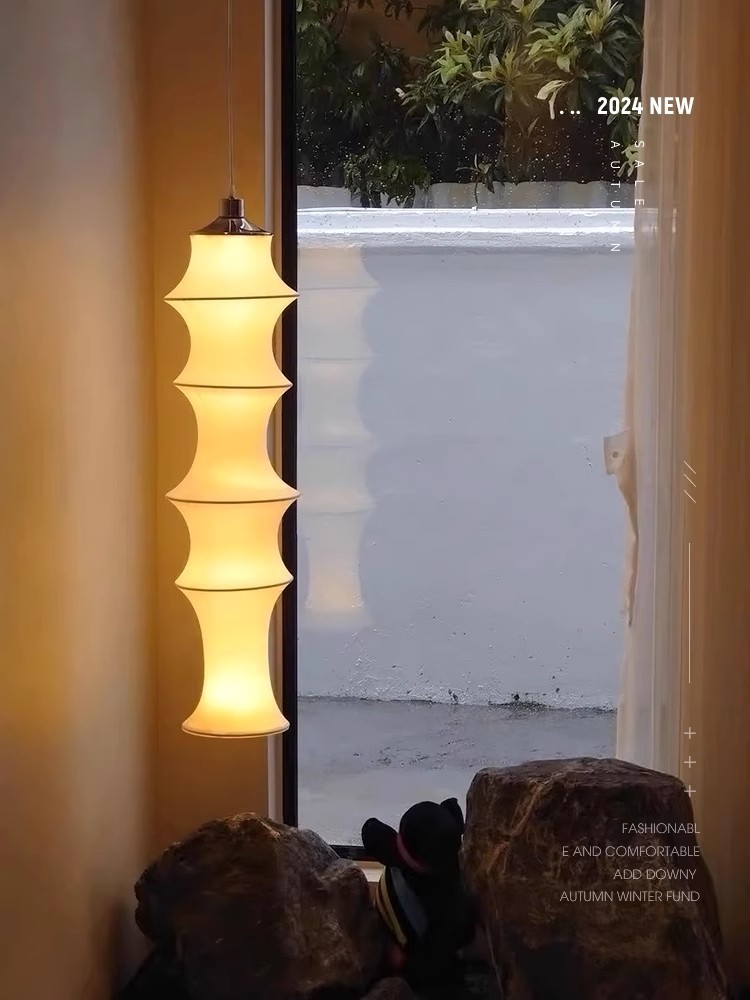 2024 북유럽 스타일 누에 실크 대나무 샹들리에 모델 룸 타타미 창조적 인 긴 독특한 대나무 램프 긴 랜턴
