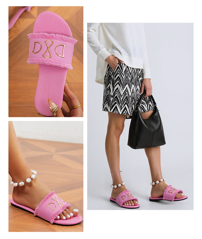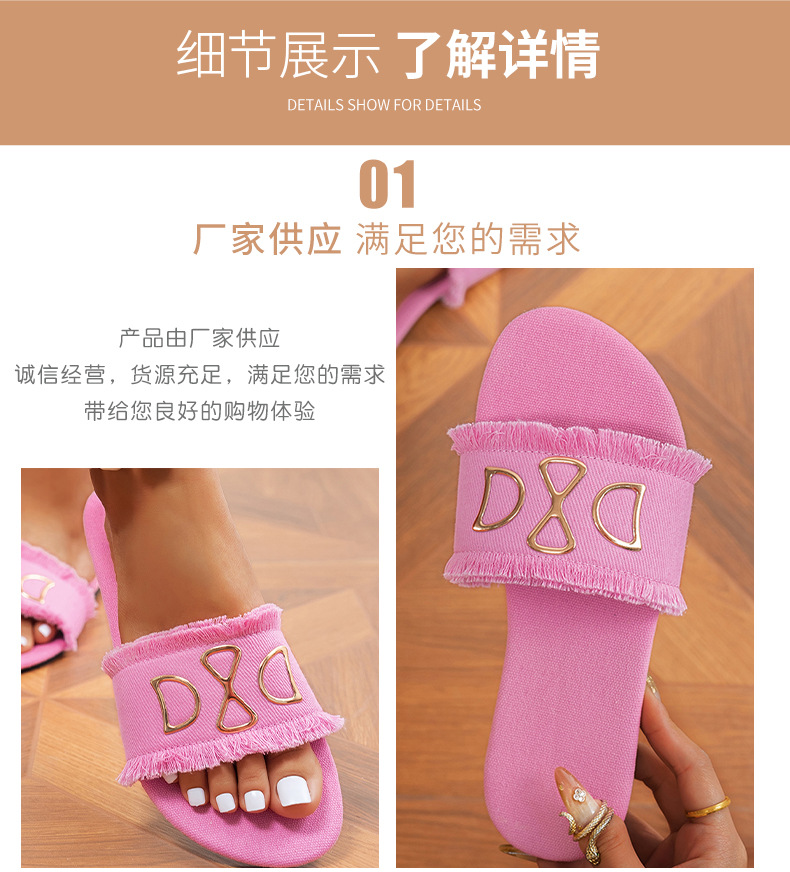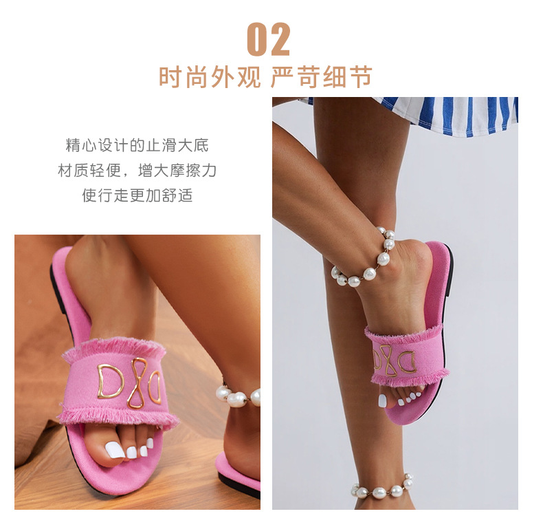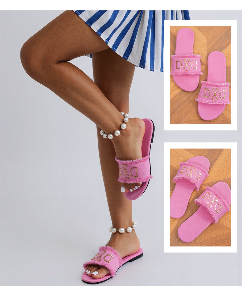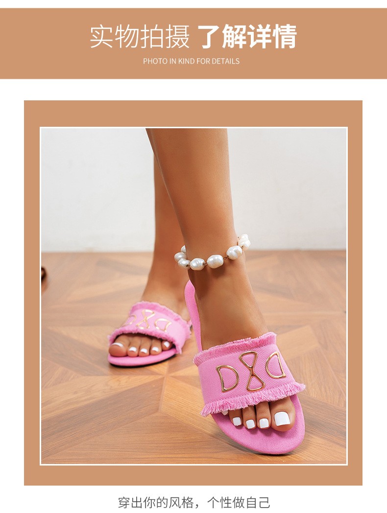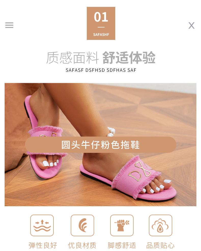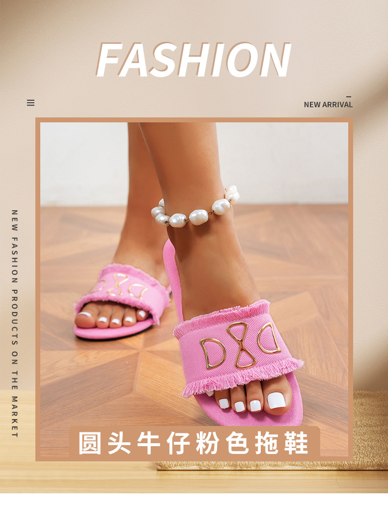 새로운 라운드 헤드 데님 핑크 여성 플랫 슬리퍼 대외 무역 사랑 유행 하 고 편안한 외관
