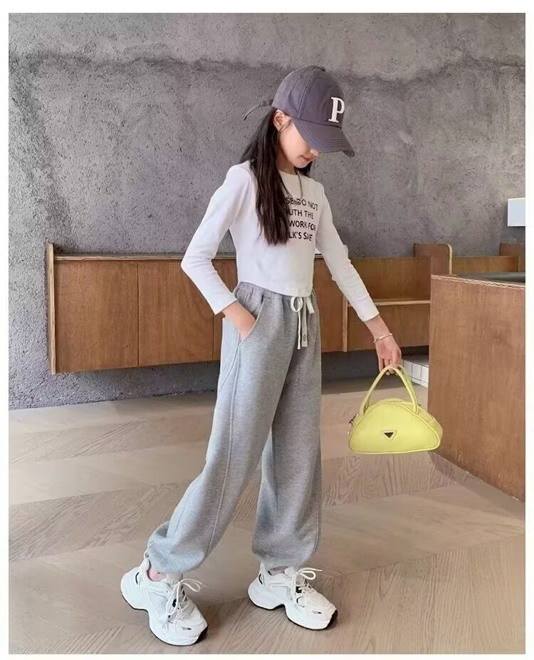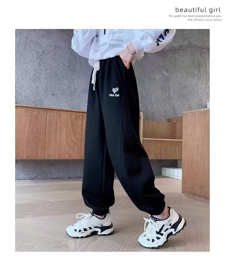 소녀 바지 2025 봄과 가을 새로운 어린이 스포츠 바지 큰 어린이와 소녀 느슨한 운동복 봄 바지 캐주얼스토어 가기