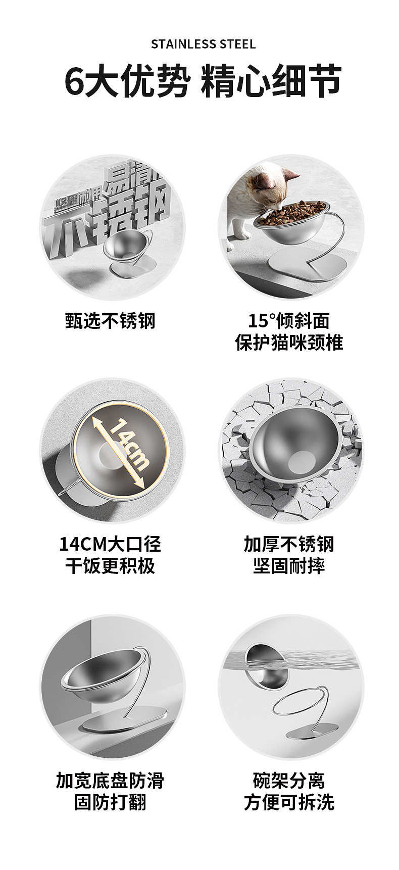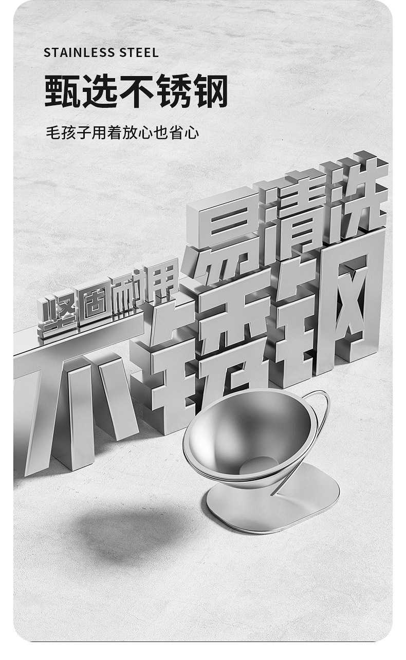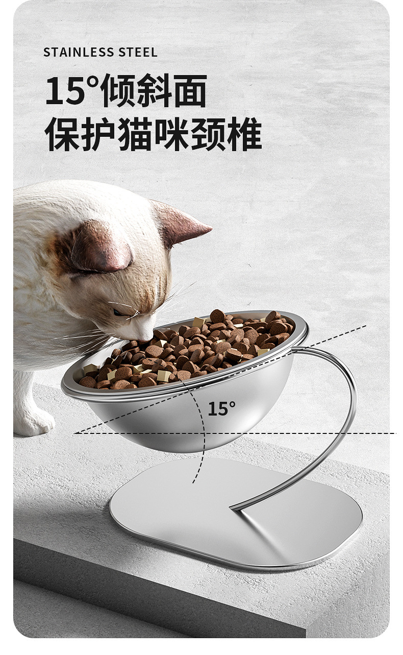 스테인레스 스틸 애완 동물 그릇 높은 삼각대 목 보호 고양이 그릇 개 그릇 안티 노크 대용량 고양이 먹이 그릇 애완 동물 용품스토어 가기