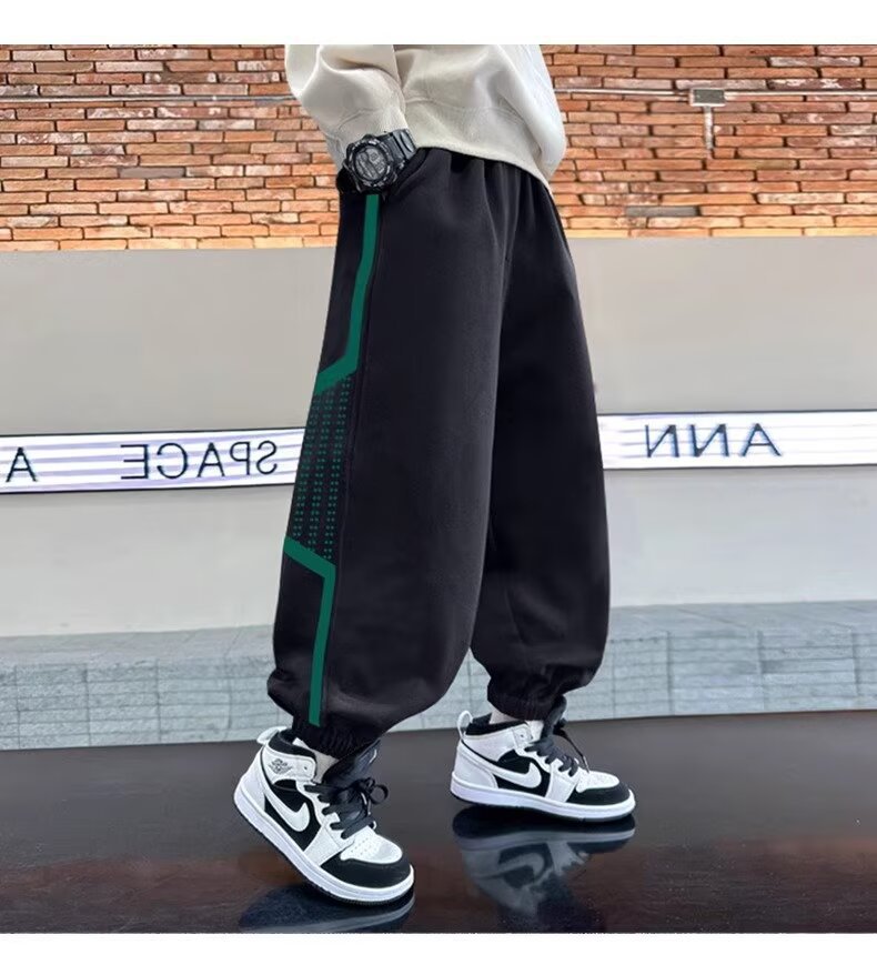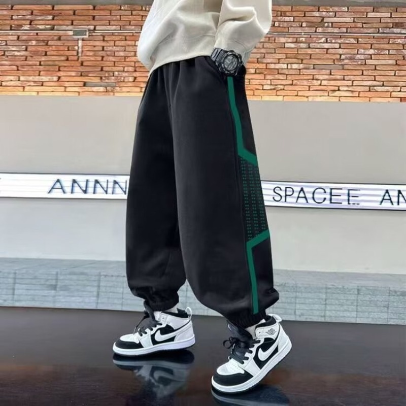 소년 바지 봄과 가을 2025 새로운 스포츠 바지 크고 작은 어린이 틈새 디자인 유행 바지 느낌스토어 가기