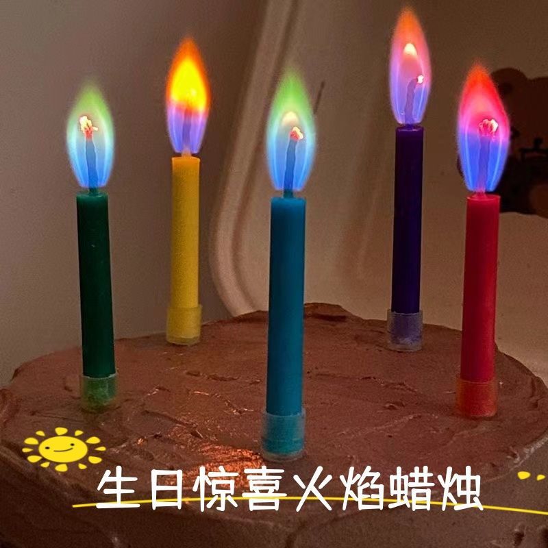 인터넷 연예인 창조적 인 불꽃 컬러 캔들 Ins 생일 케이크 장식 글로우 색상 변경 사진 레인보우 생일스토어 가기