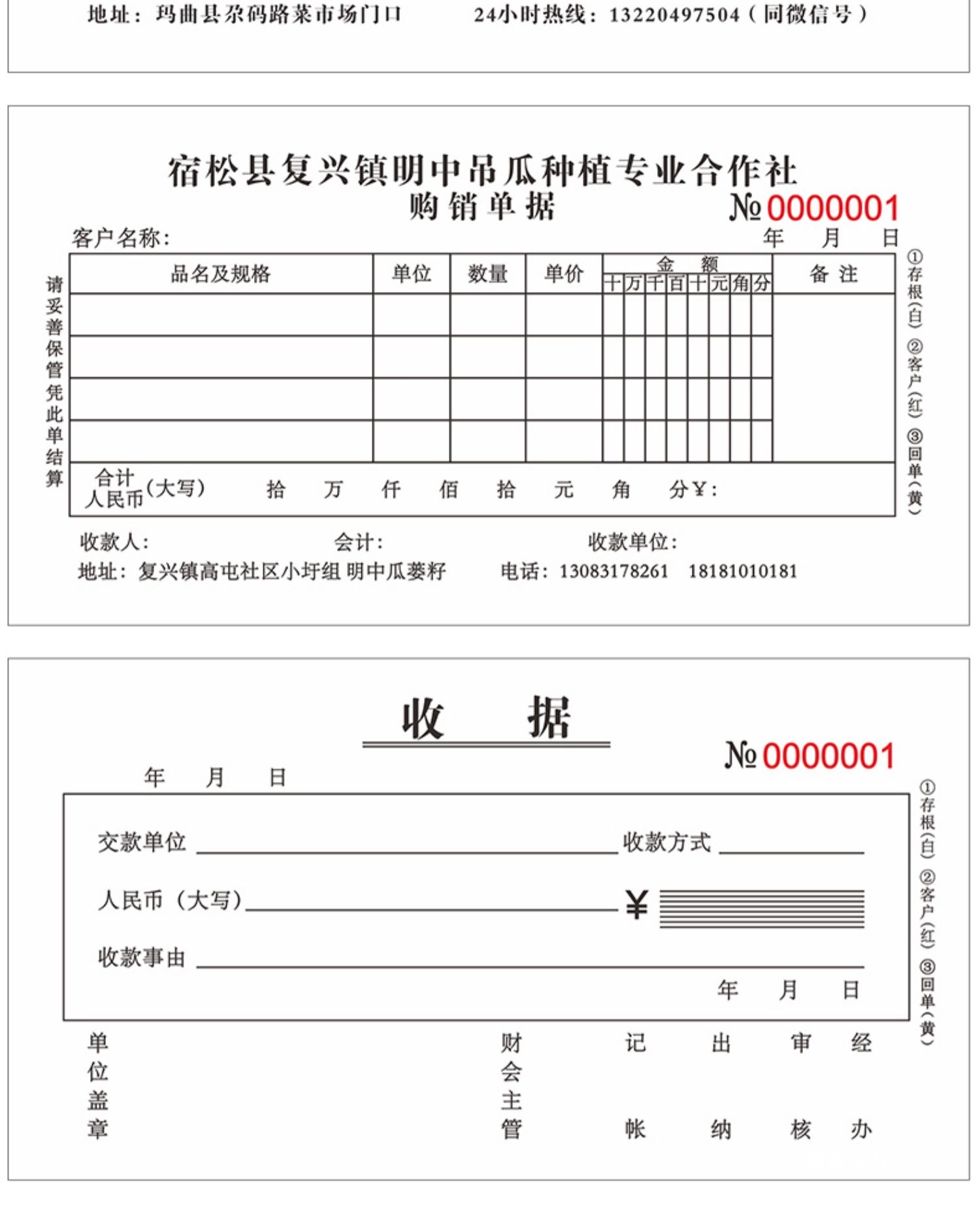 컬렉션 영수증 사용자 정의 단일 열 빌 트리플 두 컬렉션 영수증 3 컬렉션 2 컬렉션 바우처 상환 탄소 복사 없음스토어 가기