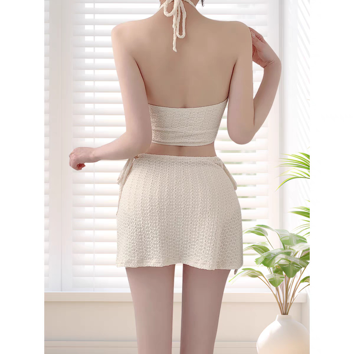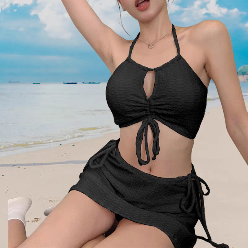 수영복 여성 2025 뉴 비키니 3 피스 세트 스커트 스플릿 고급 퓨어 레이스 업 보수적 인 해변 온천스토어 가기