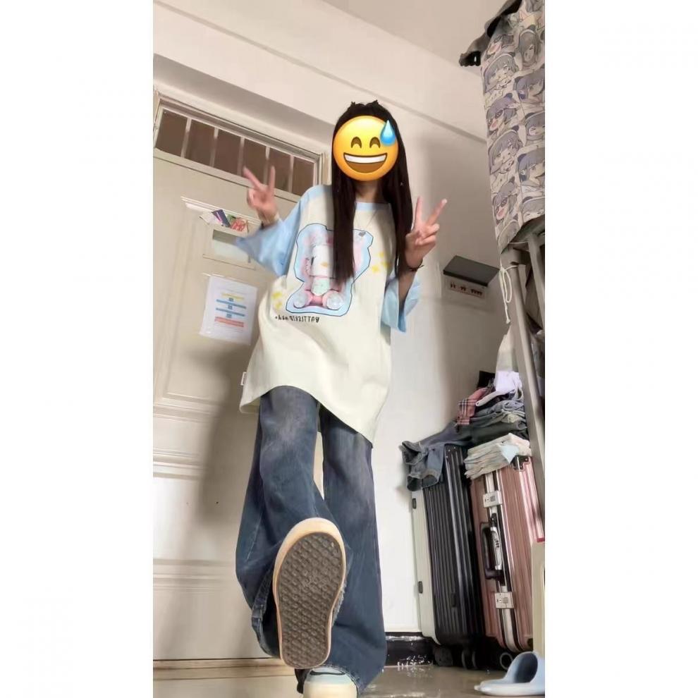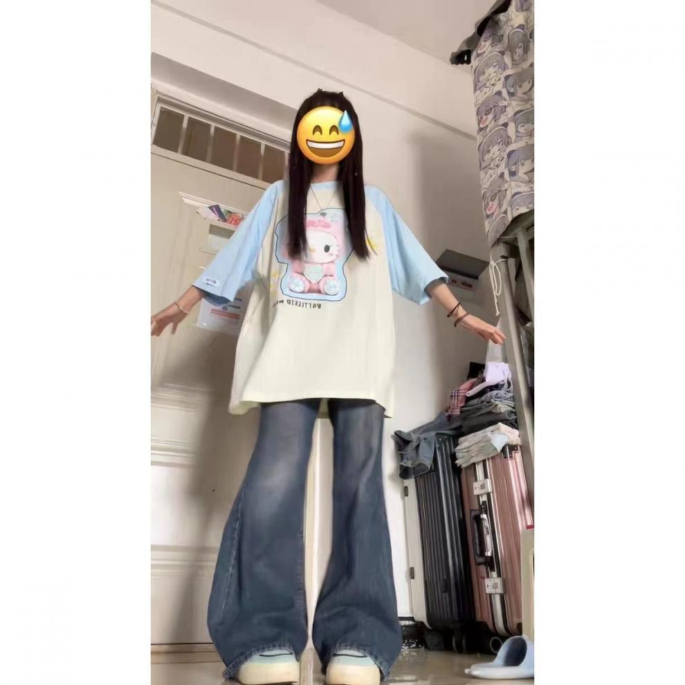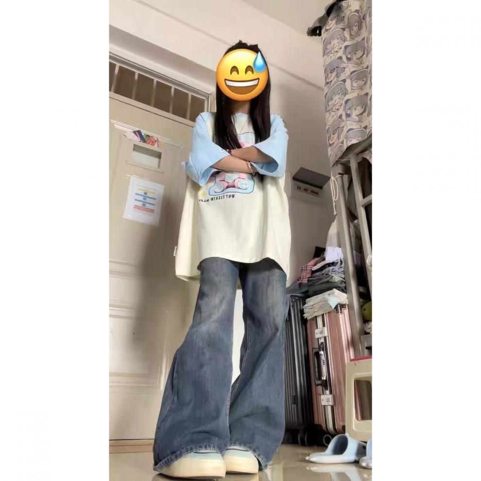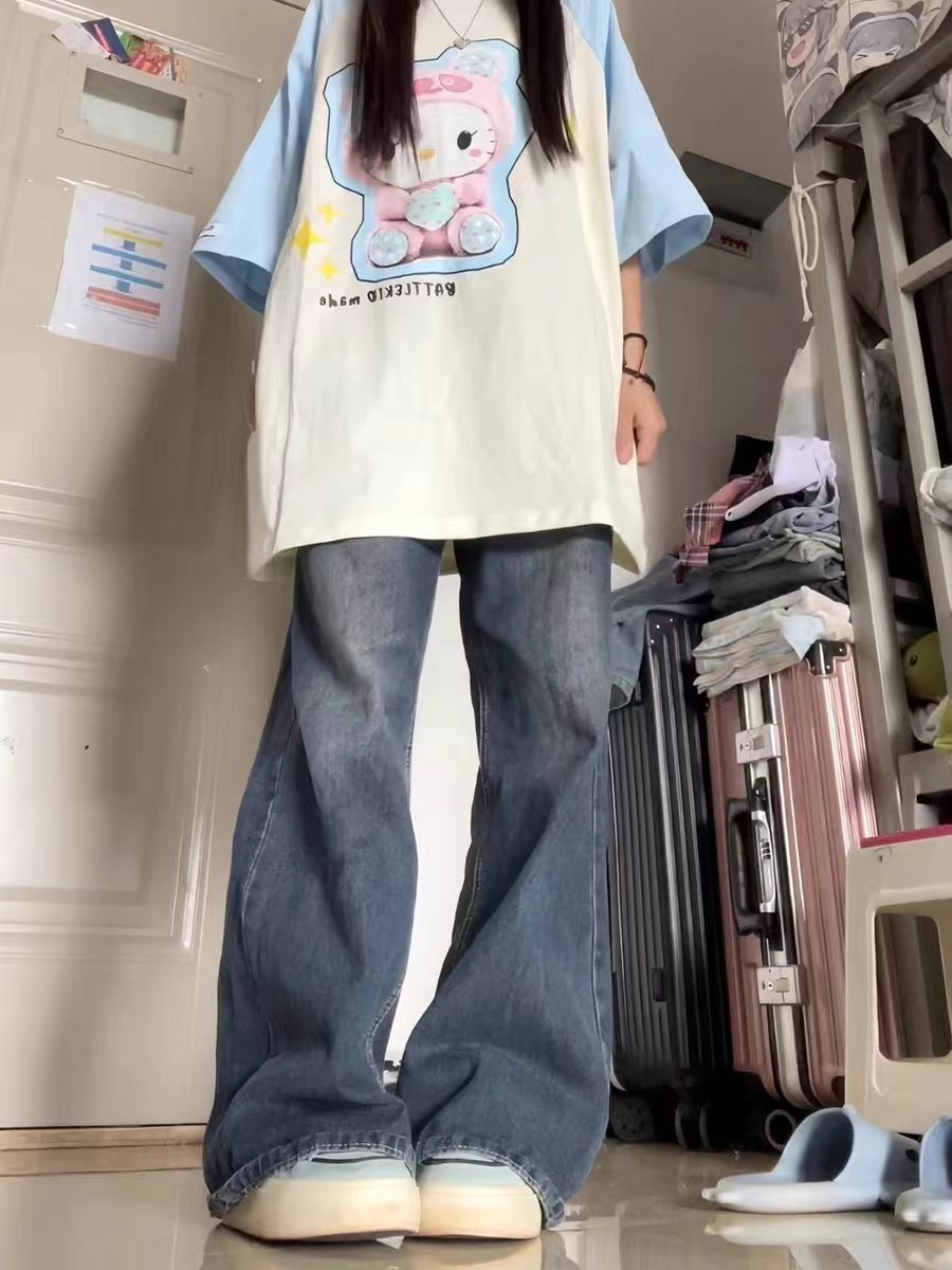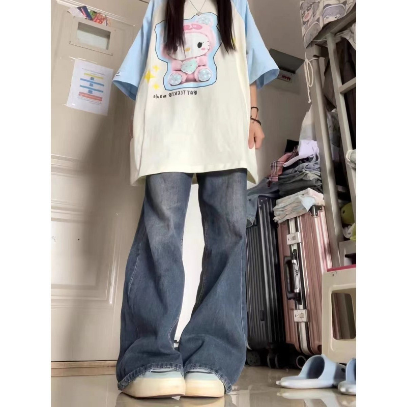 빈티지 마이크로 라 청바지 여성의 2025 년 봄과 여름 루즈 인 트렌디 한 높은 허리 슬리밍 넓은 배 모양의 바디 팬츠스토어 가기