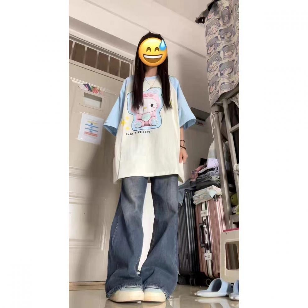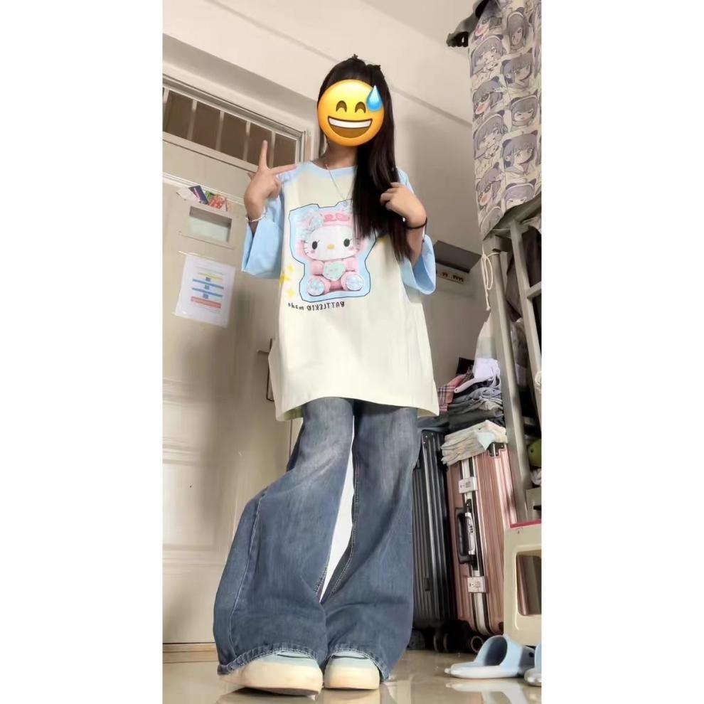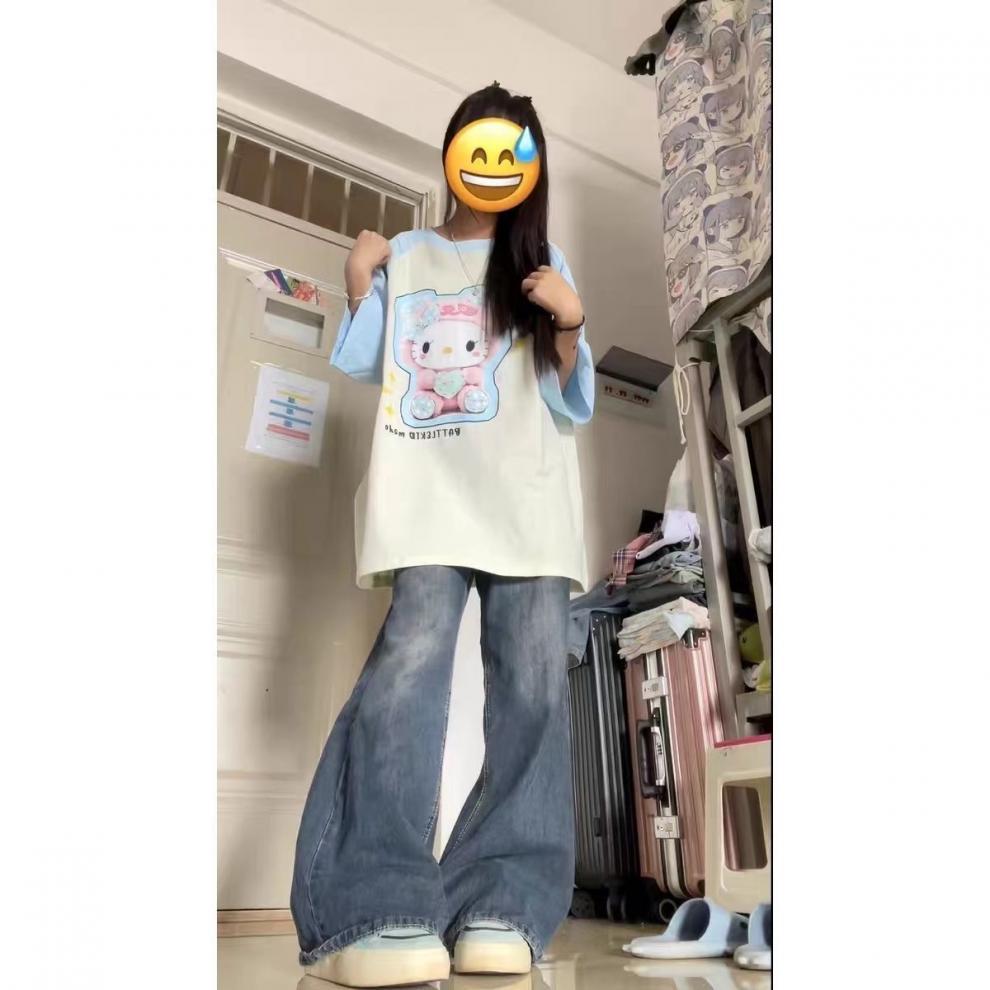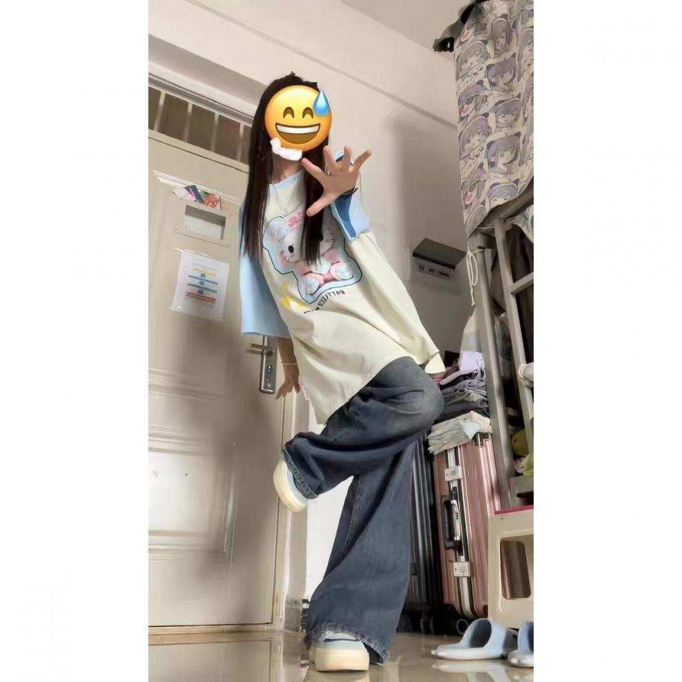 빈티지 마이크로 라 청바지 여성의 2025 년 봄과 여름 루즈 인 트렌디 한 높은 허리 슬리밍 넓은 배 모양의 바디 팬츠스토어 가기