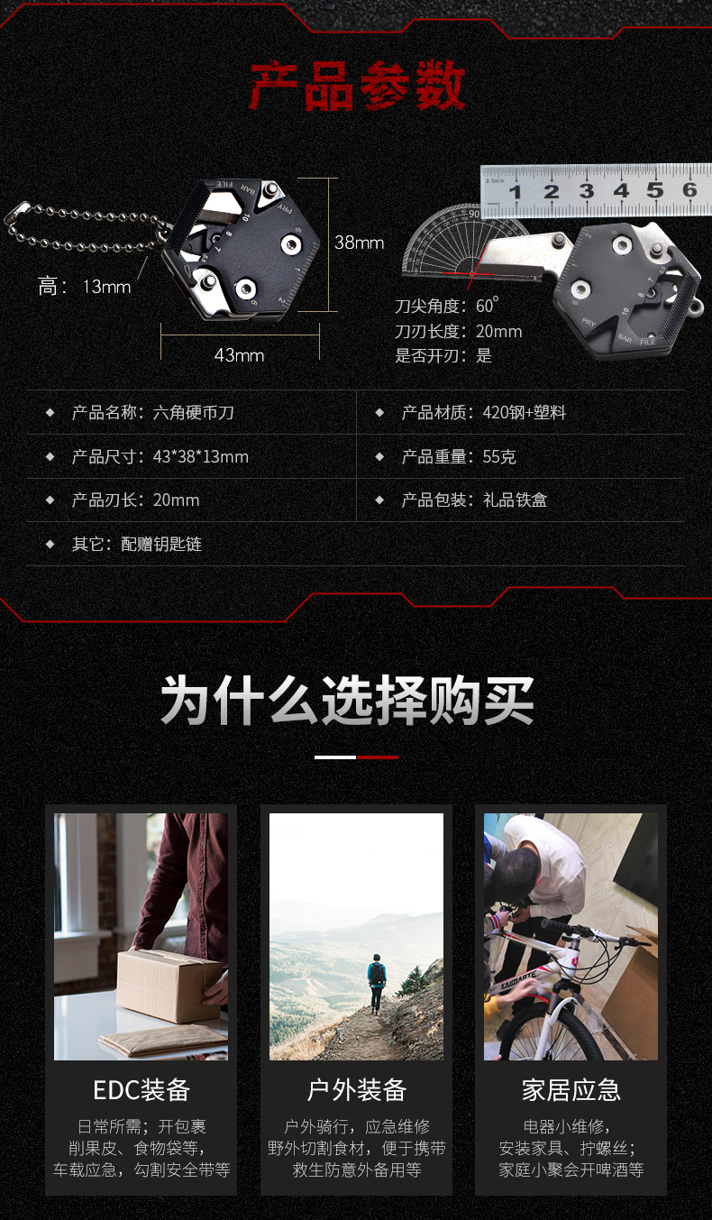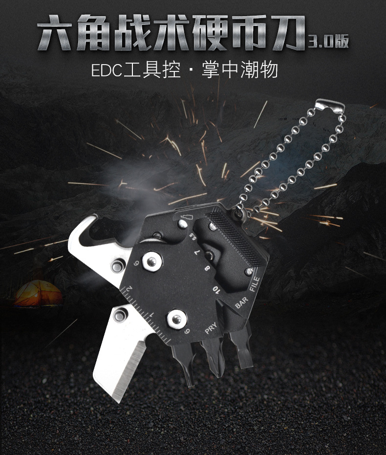미니 다기능 칼 육각형 키 교수형 동전 칼 접히는 칼 창조적 인 EDC 조합 도구 드라이버
