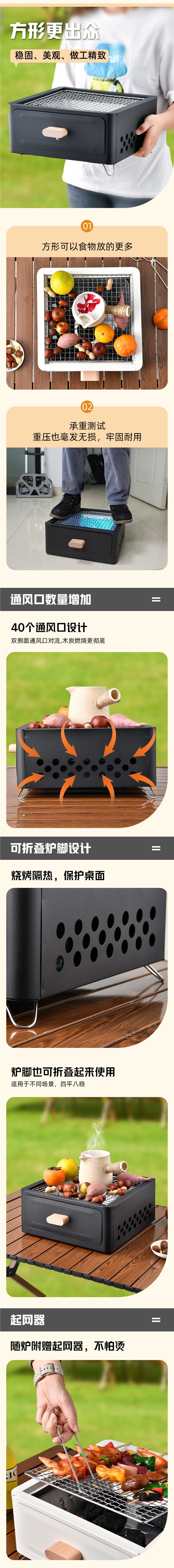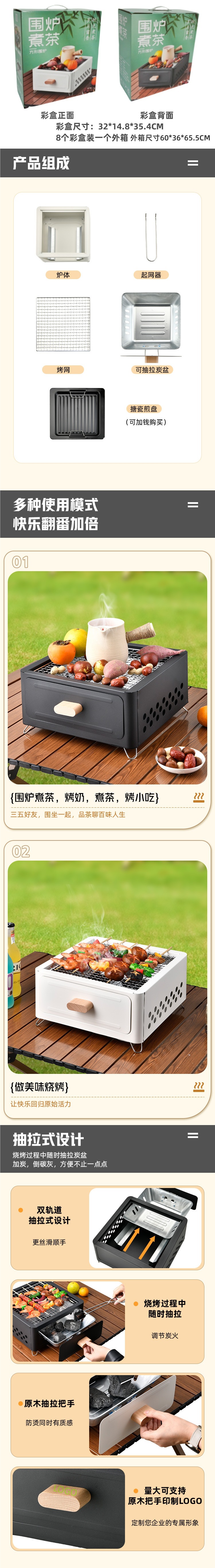 Yuanyi Square 엔클로징 스토브 차 요리 스토브 풀 세트 캠핑 가정용 마당 바베큐 야외 휴대용 숯 바베큐