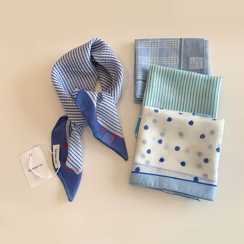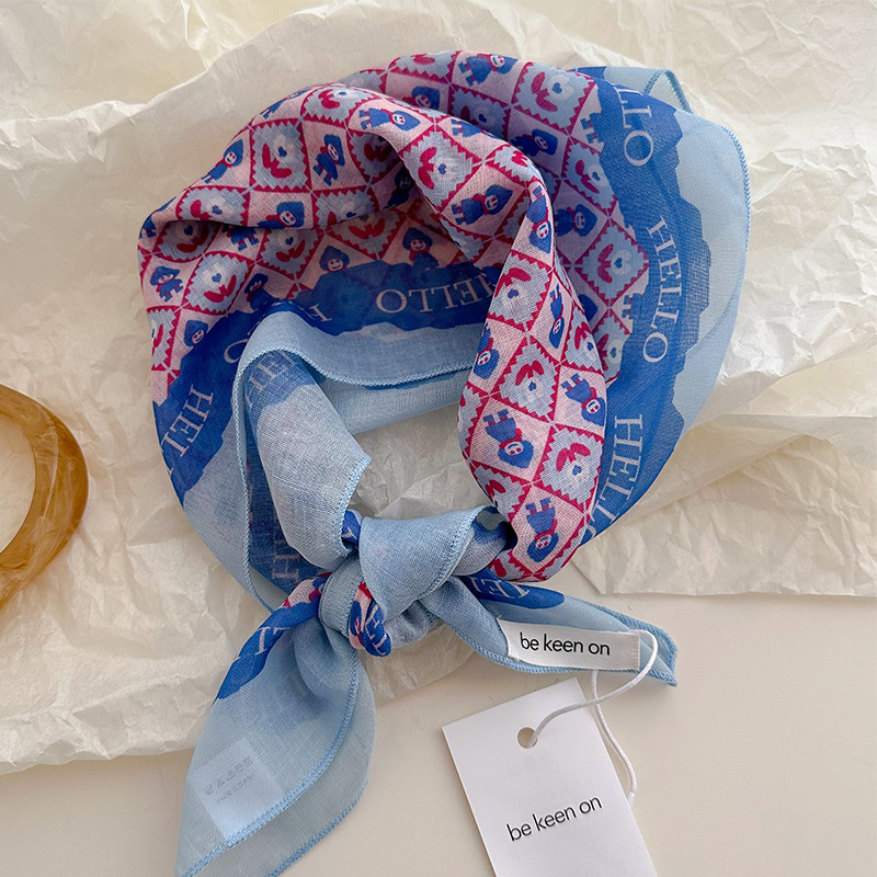 블루 터번 여성의 봄과 여름 새로운 하이 엔드 센스 헤어 밴드 통기성 예술적 작은 광장 올 매치 터번 트렌디 트라이앵글 스카프스토어 가기