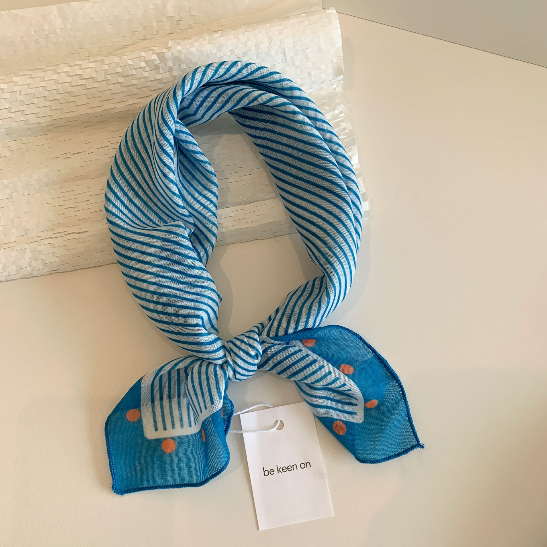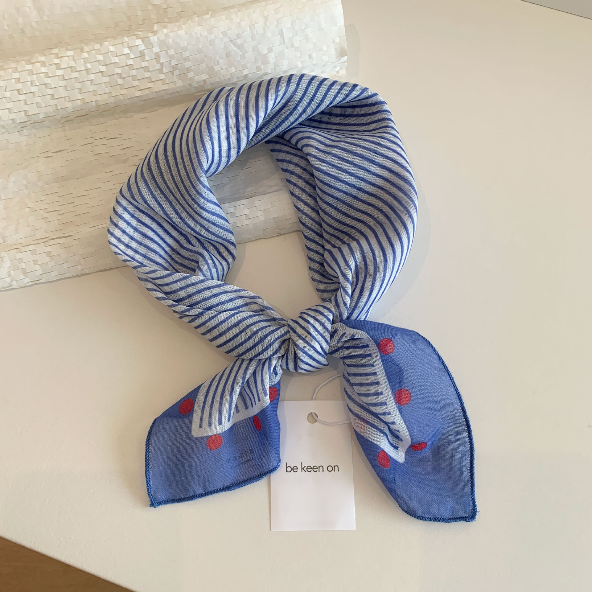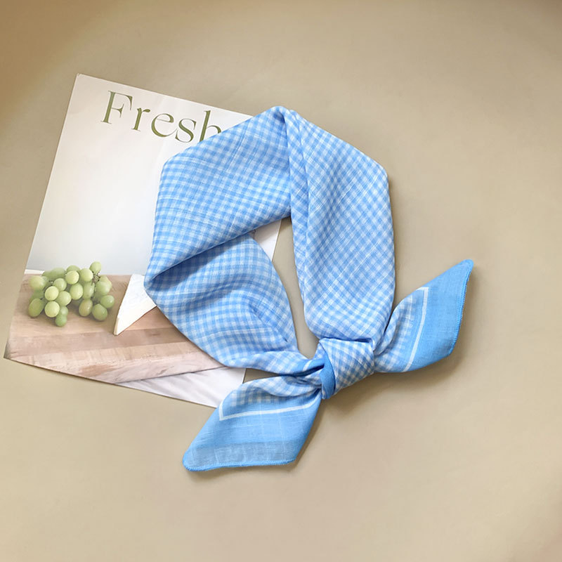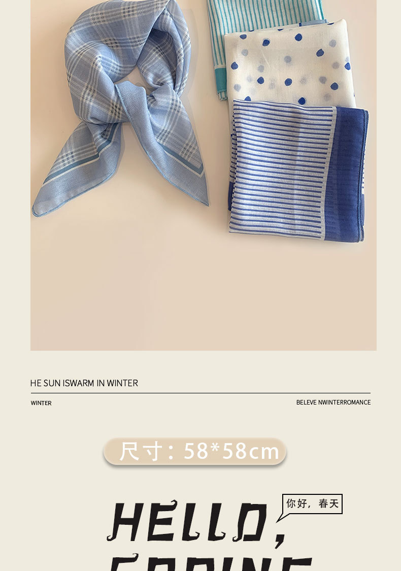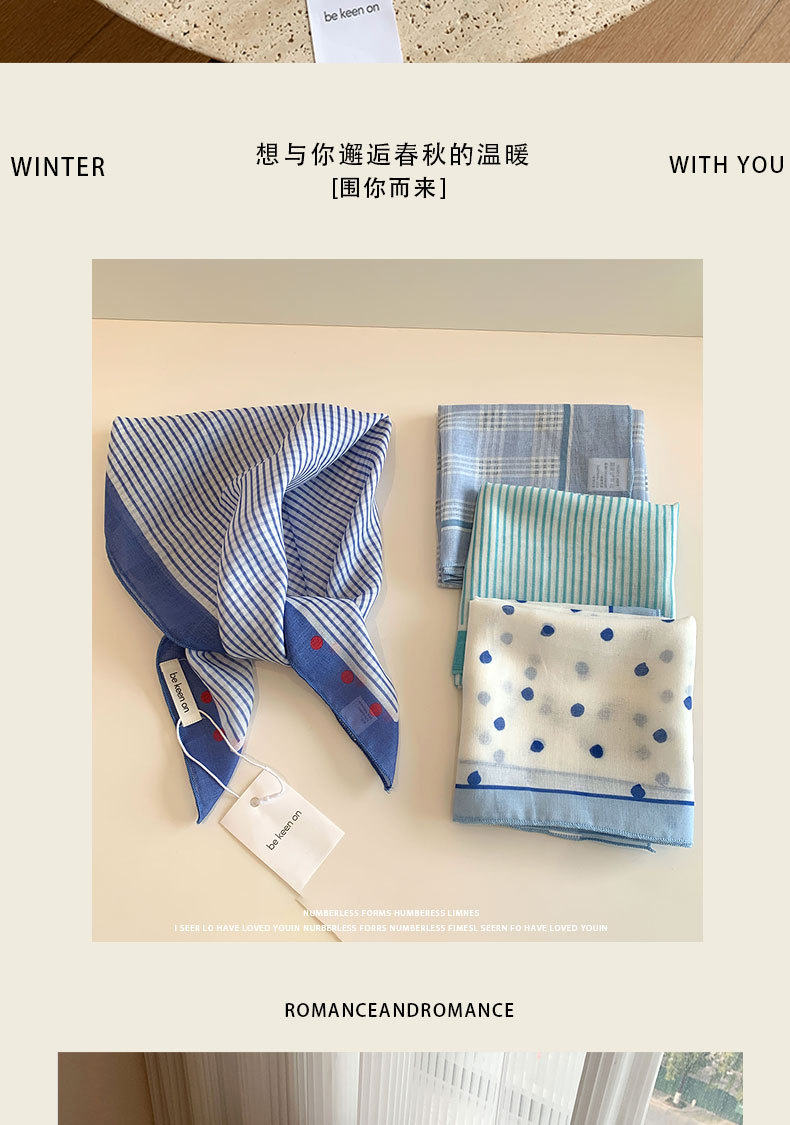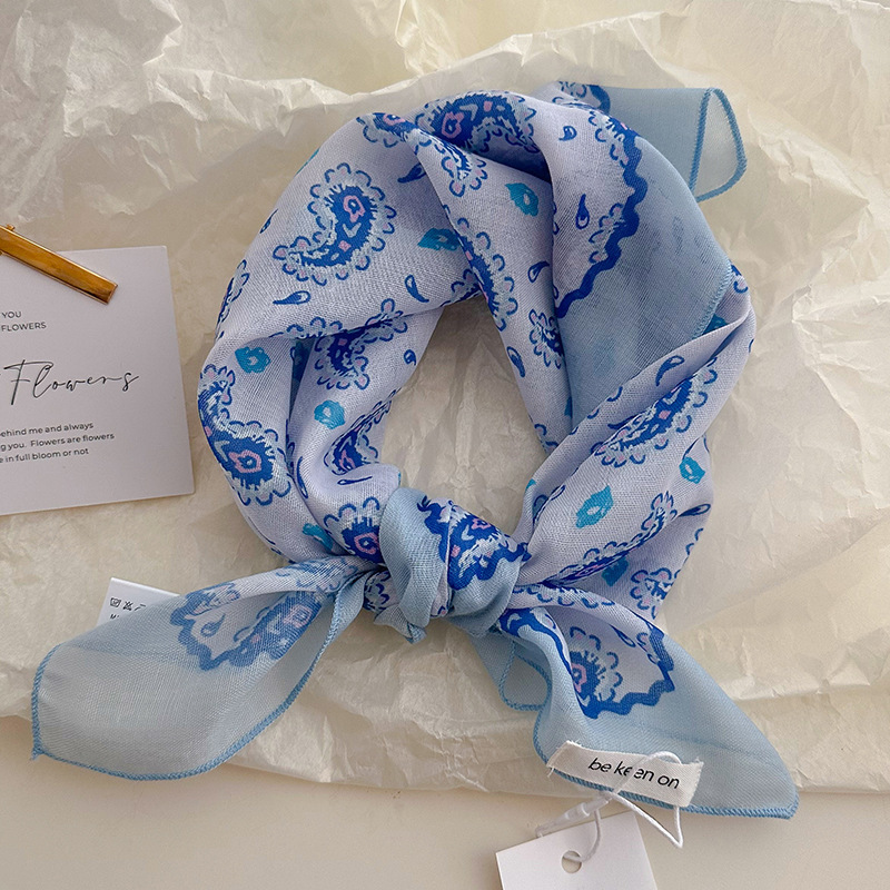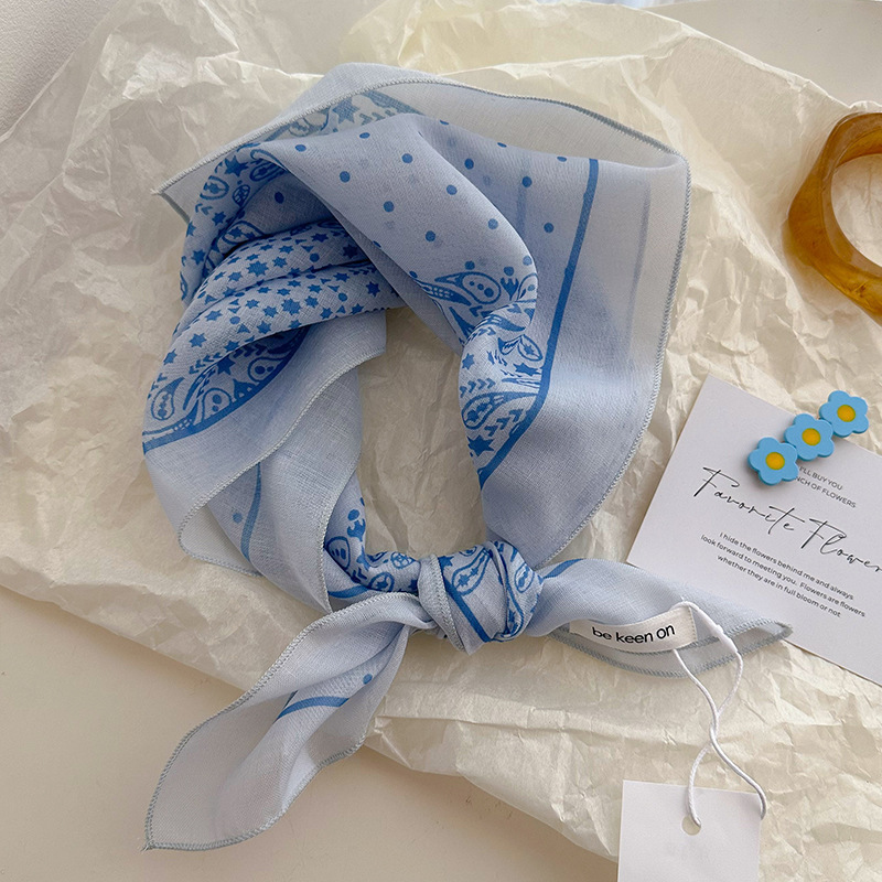 블루 터번 여성의 봄과 여름 새로운 하이 엔드 센스 헤어 밴드 통기성 예술적 작은 광장 올 매치 터번 트렌디 트라이앵글 스카프