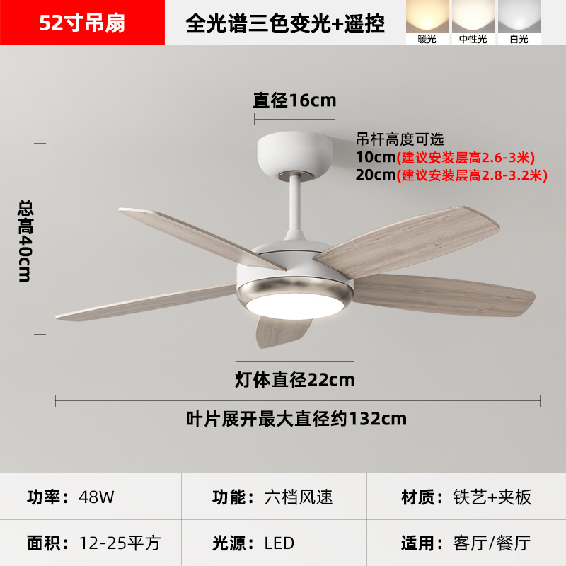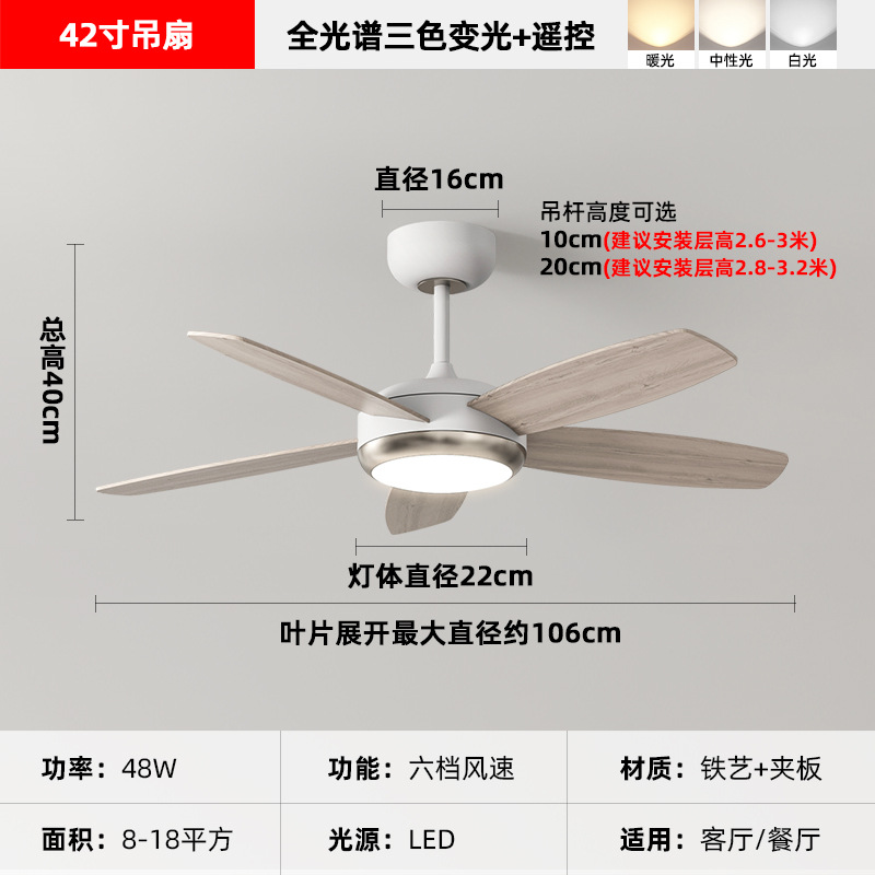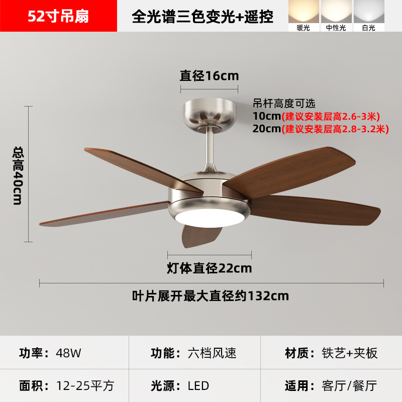 국경 간 미국 복고풍 팬 램프 거실 식당 천장 팬 램프 창조적 인 장식 주파수 변환 전통적인 전기 팬 중산 램프