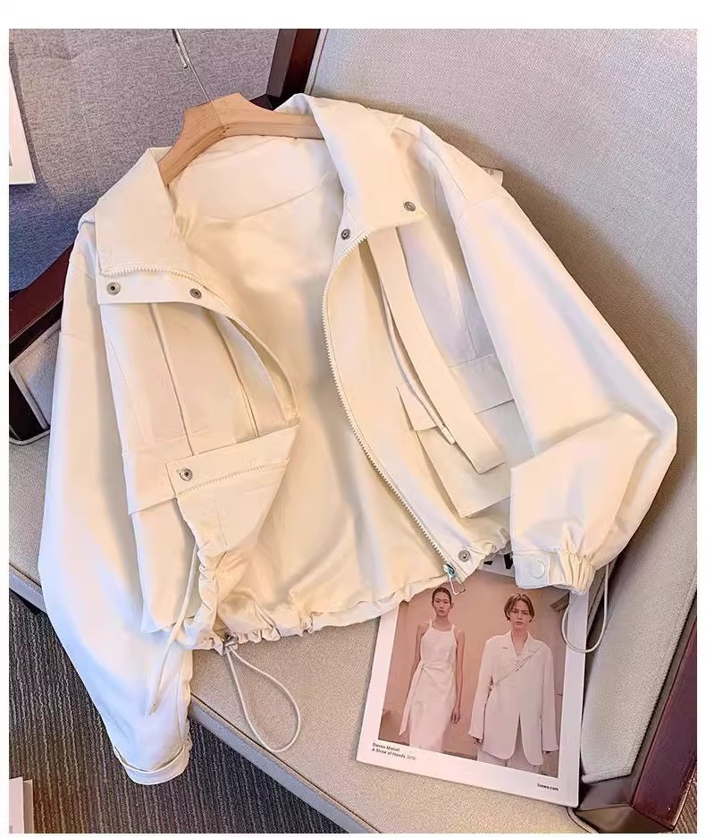 가을 2025 년 새로운 여성 쇼트 코트 재킷 캐주얼 올 매치 충전 코트 후드 작업 재킷 폭발 유행