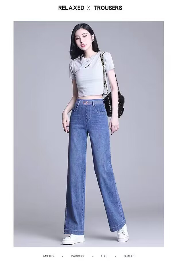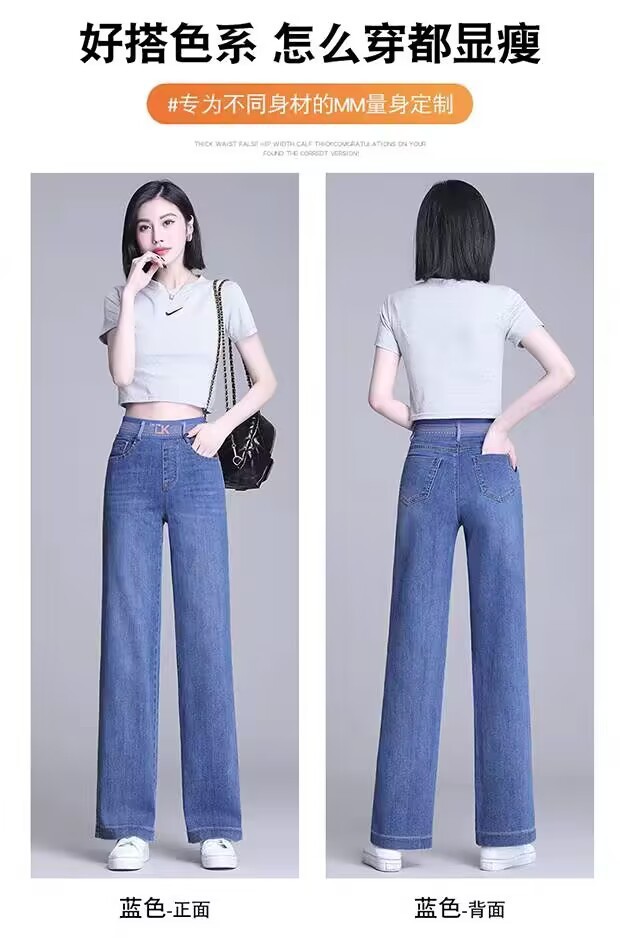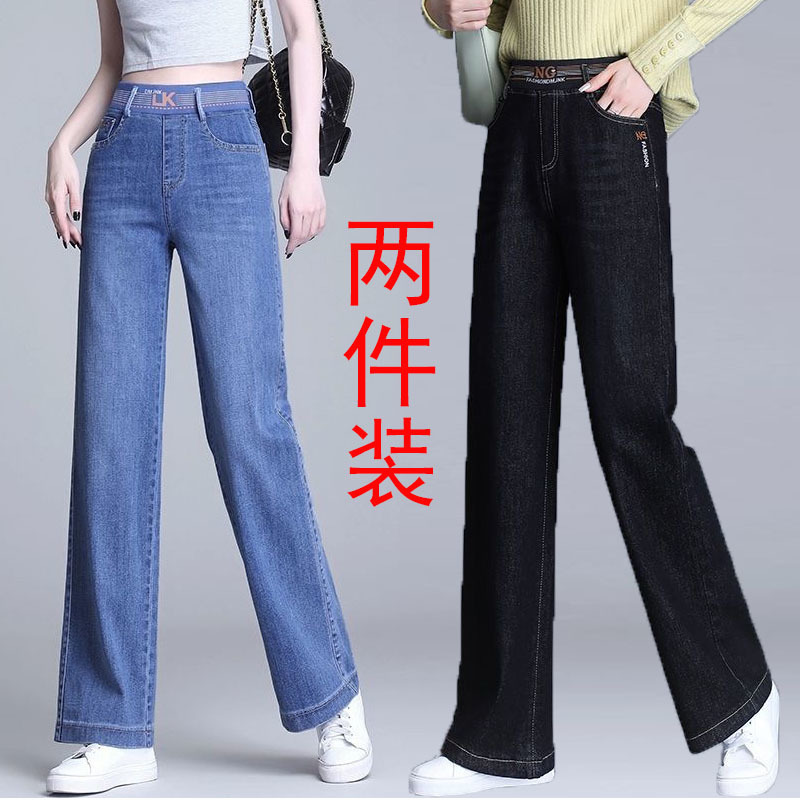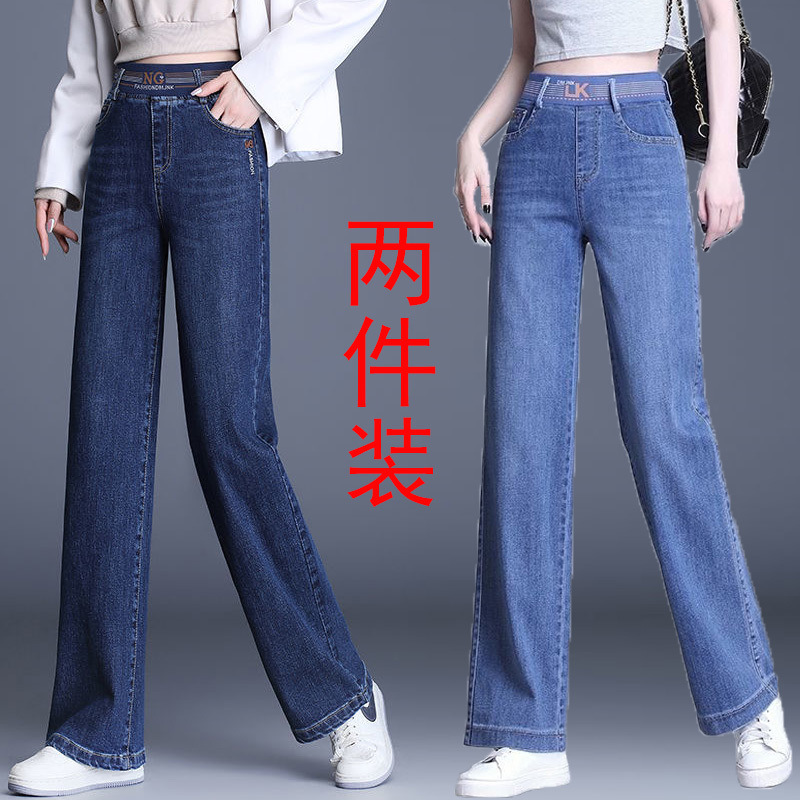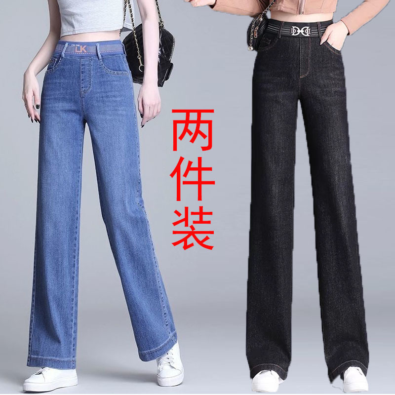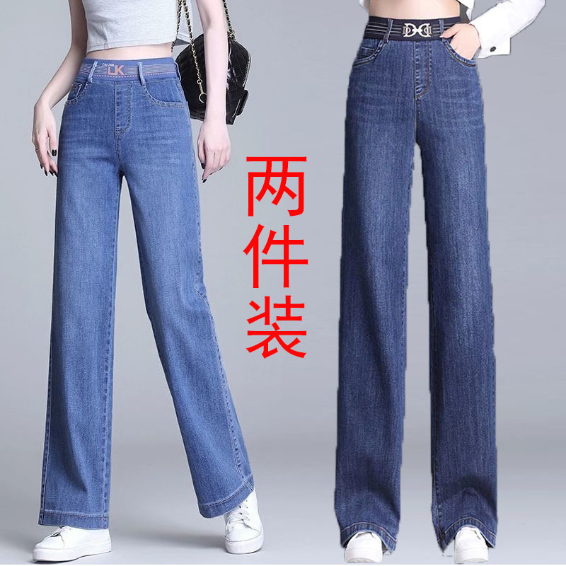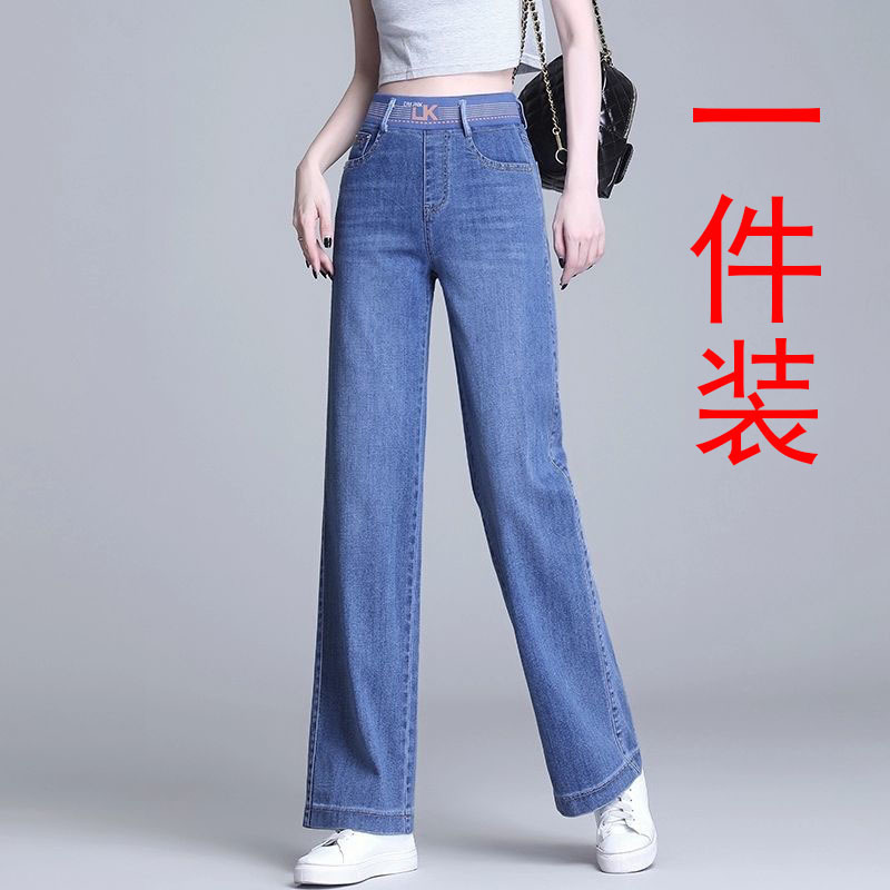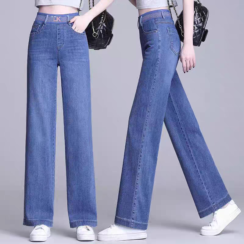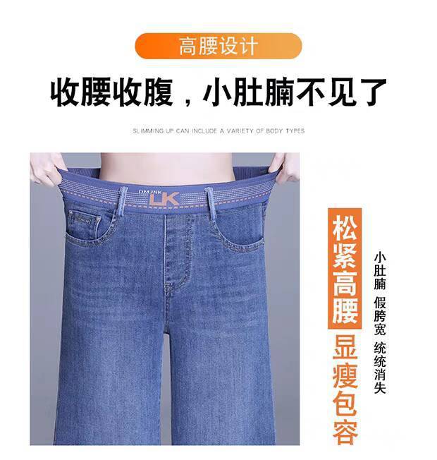 새로운 넓은 다리 바지 청바지 여성 여름 얇은 높은 허리 탄성 느슨한 슬림 탄성 허리 스트레이트 슬림스토어 가기