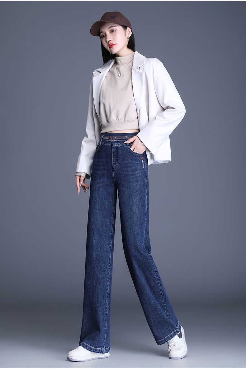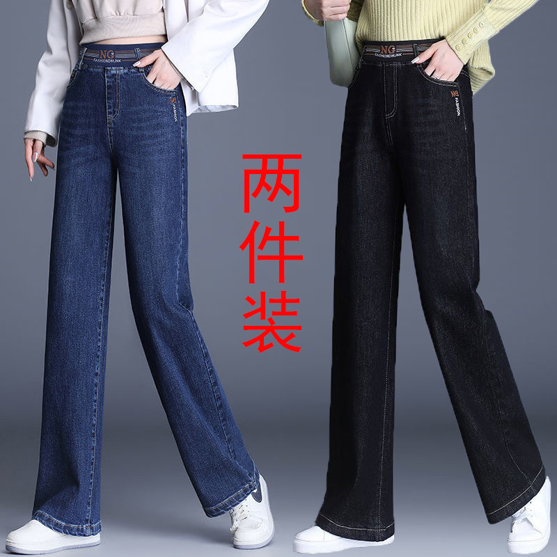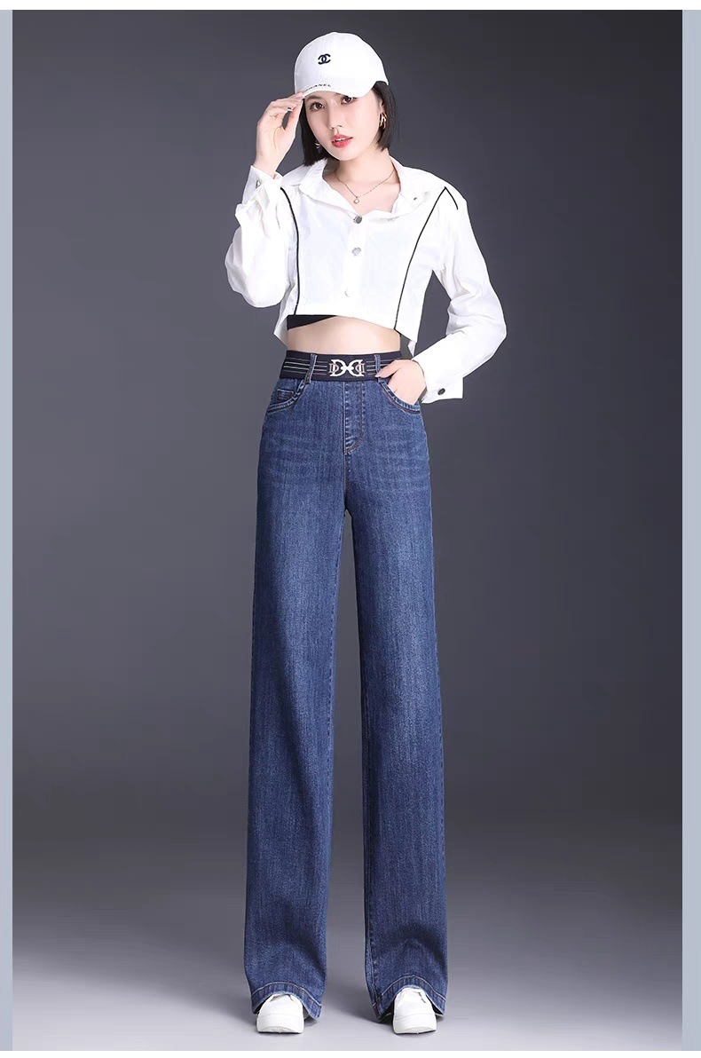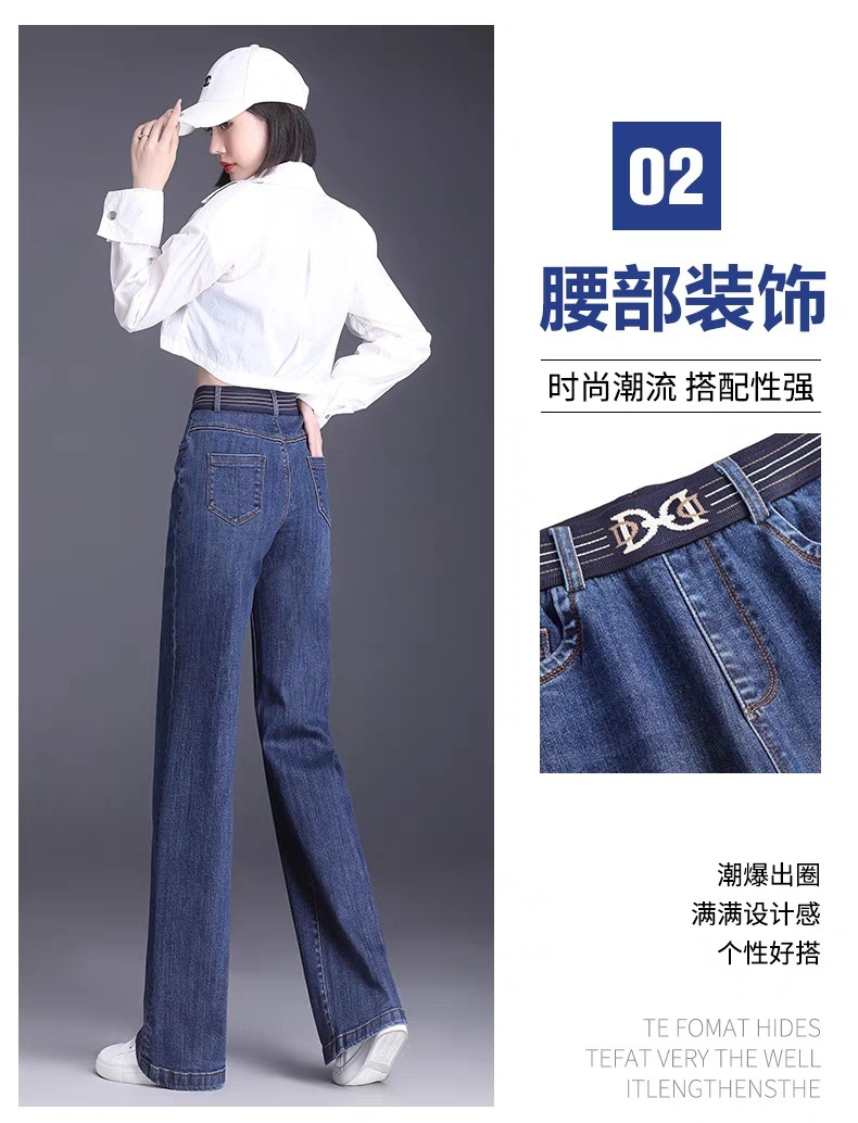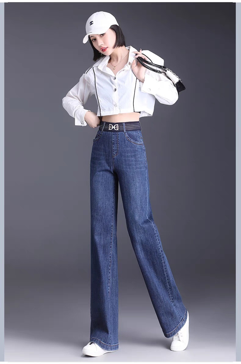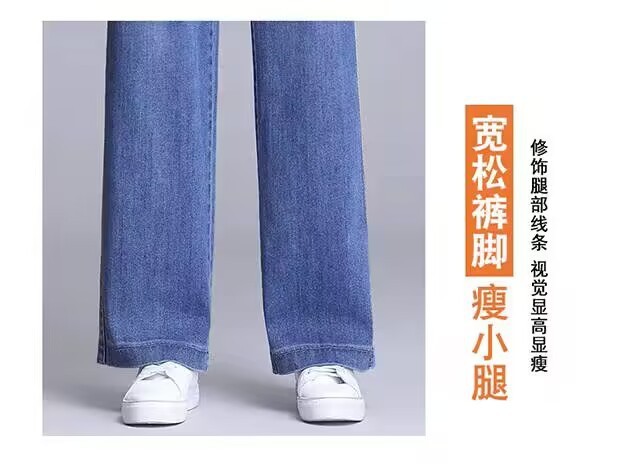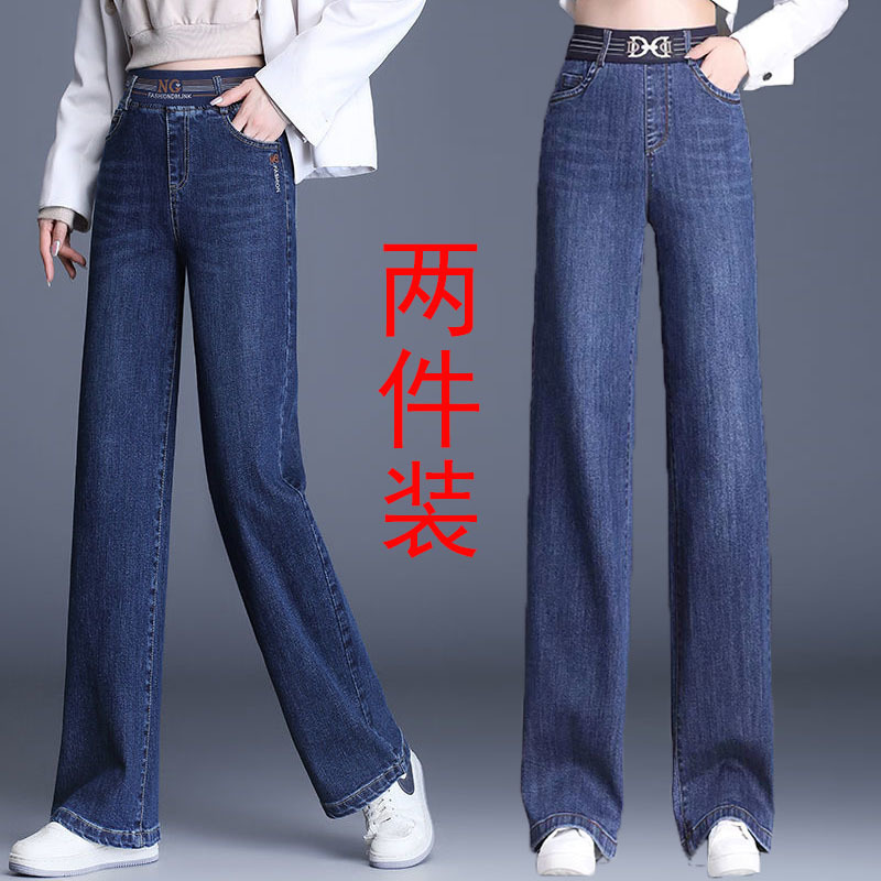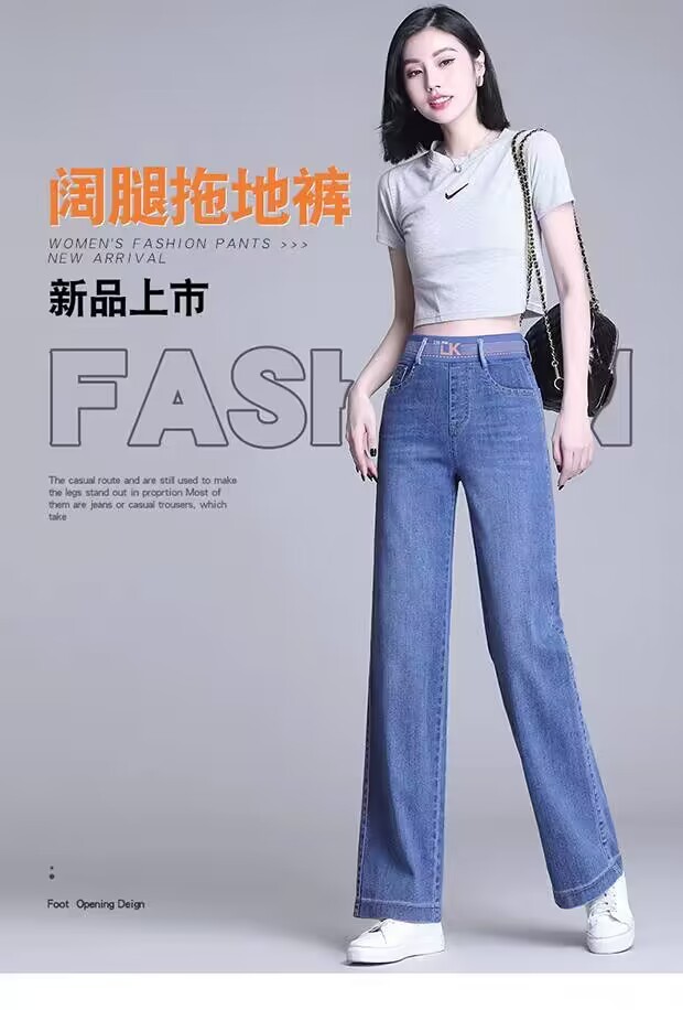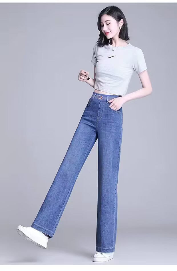 새로운 넓은 다리 바지 청바지 여성 여름 얇은 높은 허리 탄성 느슨한 슬림 탄성 허리 스트레이트 슬림스토어 가기