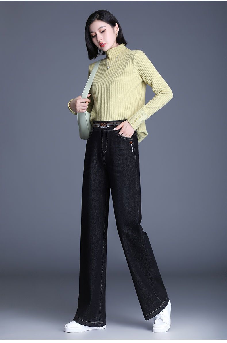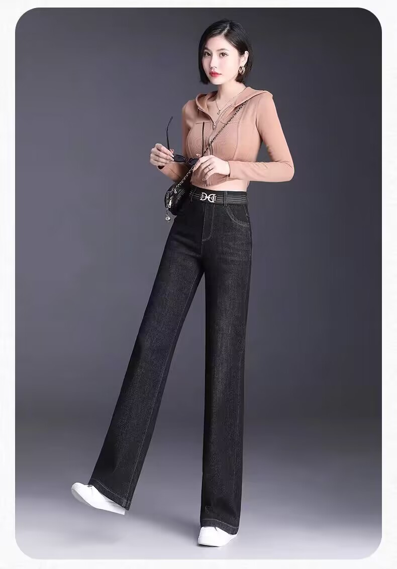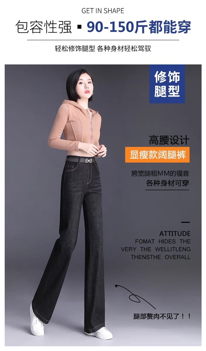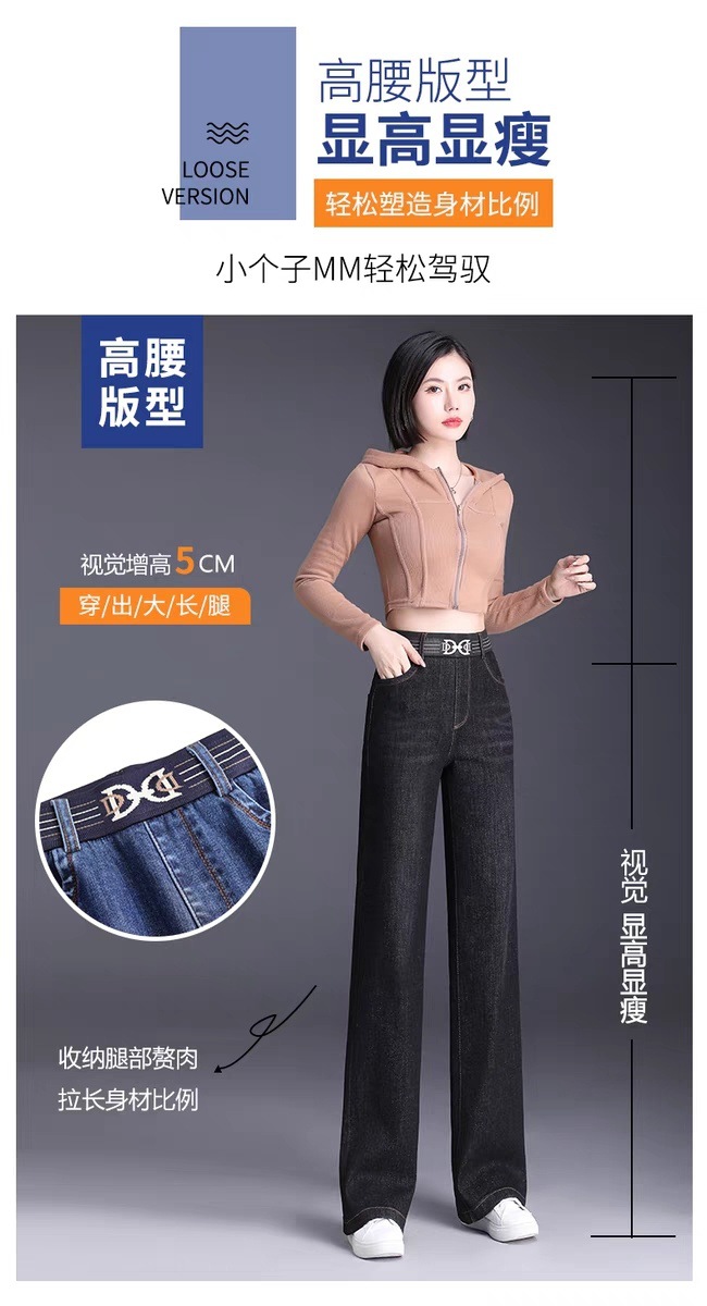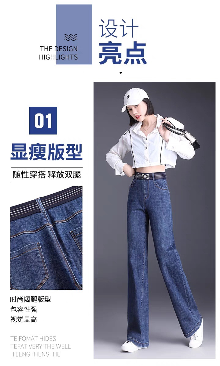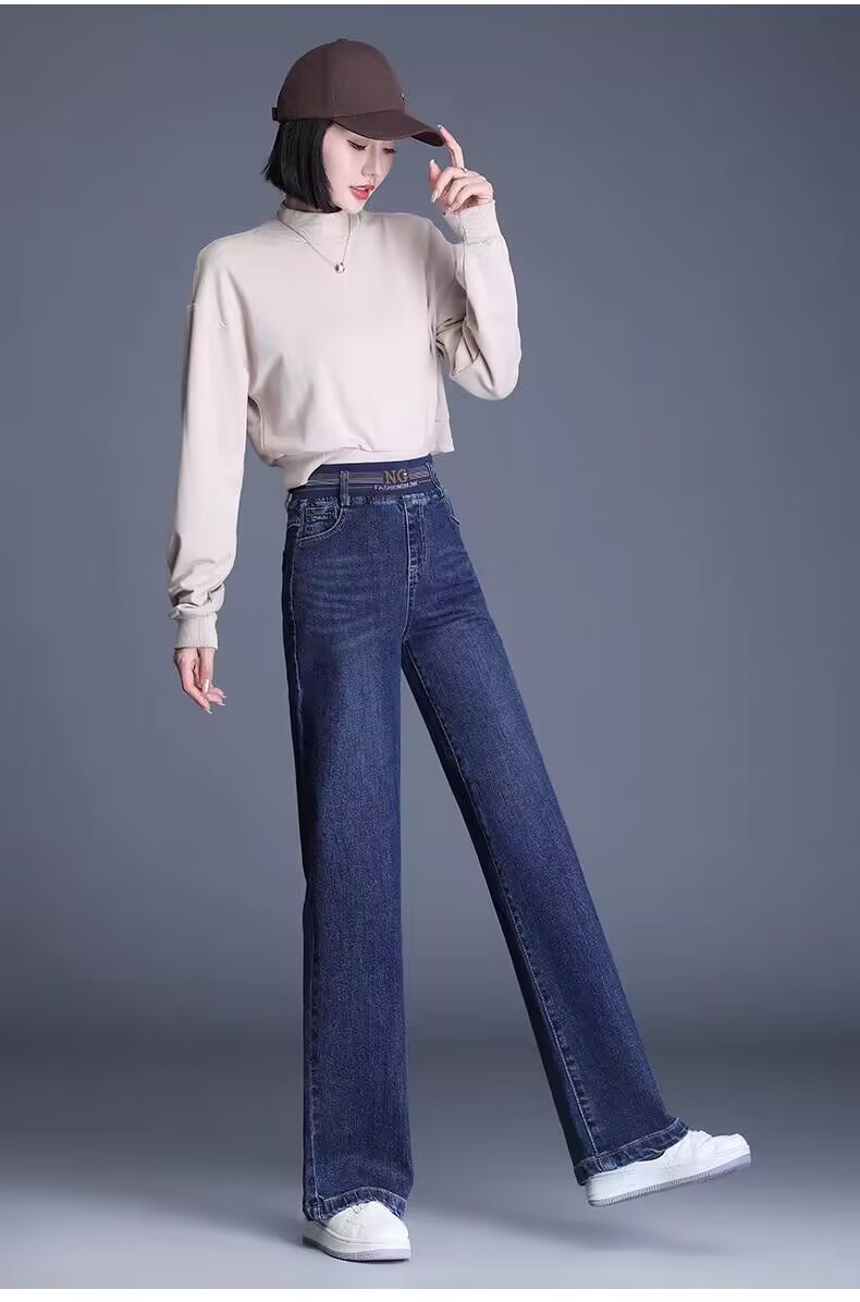 새로운 넓은 다리 바지 청바지 여성 여름 얇은 높은 허리 탄성 느슨한 슬림 탄성 허리 스트레이트 슬림스토어 가기