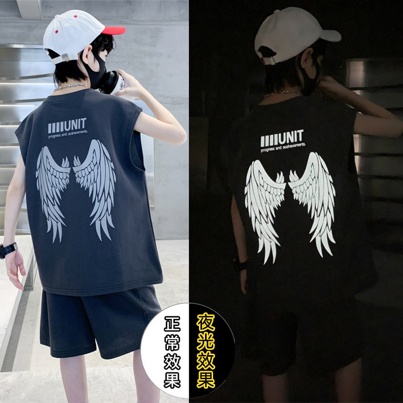 남자들의 여름 세트 2025 새로운 스타일 중대형 어린이 잘 생긴 유행 소년 여름 조끼 민소매 얇은 유행스토어 가기