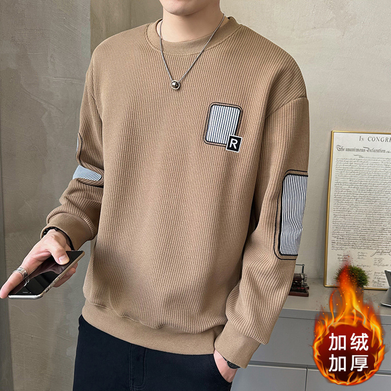 스웨트 셔츠 남자의 봄 가을과 겨울 2025 새로운 무거운 유행 브랜드 캐주얼 긴팔 티셔츠 느슨한 트렌디 라운드 넥 탑
