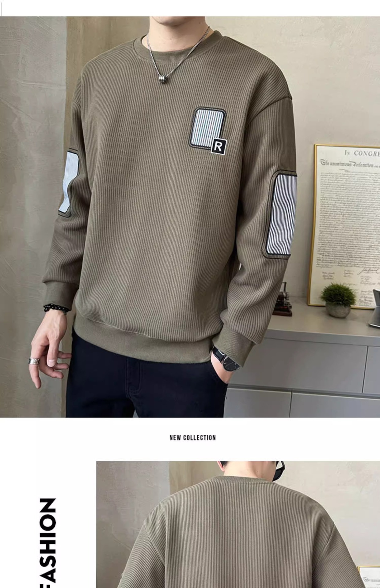 스웨트 셔츠 남자의 봄 가을과 겨울 2025 새로운 무거운 유행 브랜드 캐주얼 긴팔 티셔츠 느슨한 트렌디 라운드 넥 탑스토어 가기