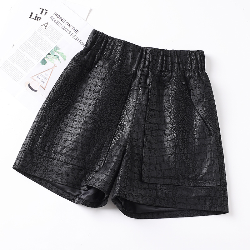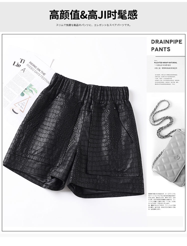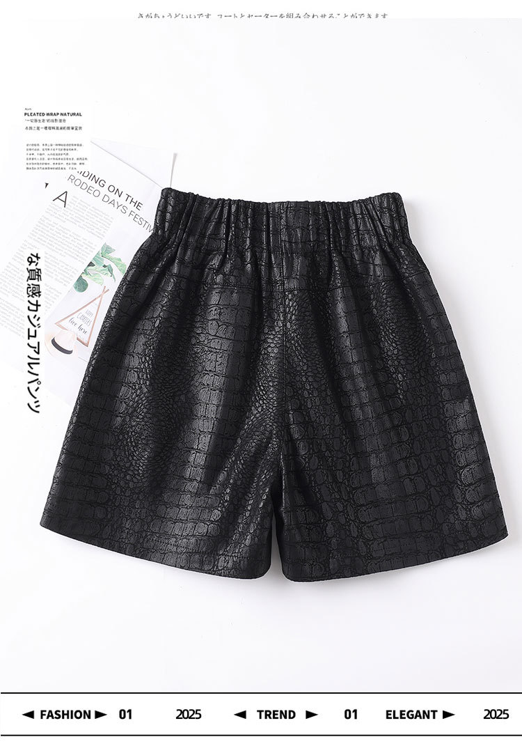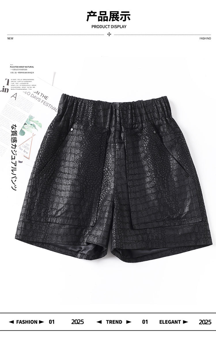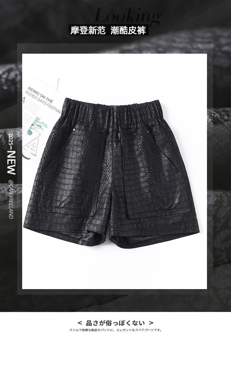 2025 봄 새 가죽 바지 여자 한국식 플러스 사이즈 느슨한 여성 가죽 반바지 캐주얼 올매치 느슨한 허리 바지 1901스토어 가기